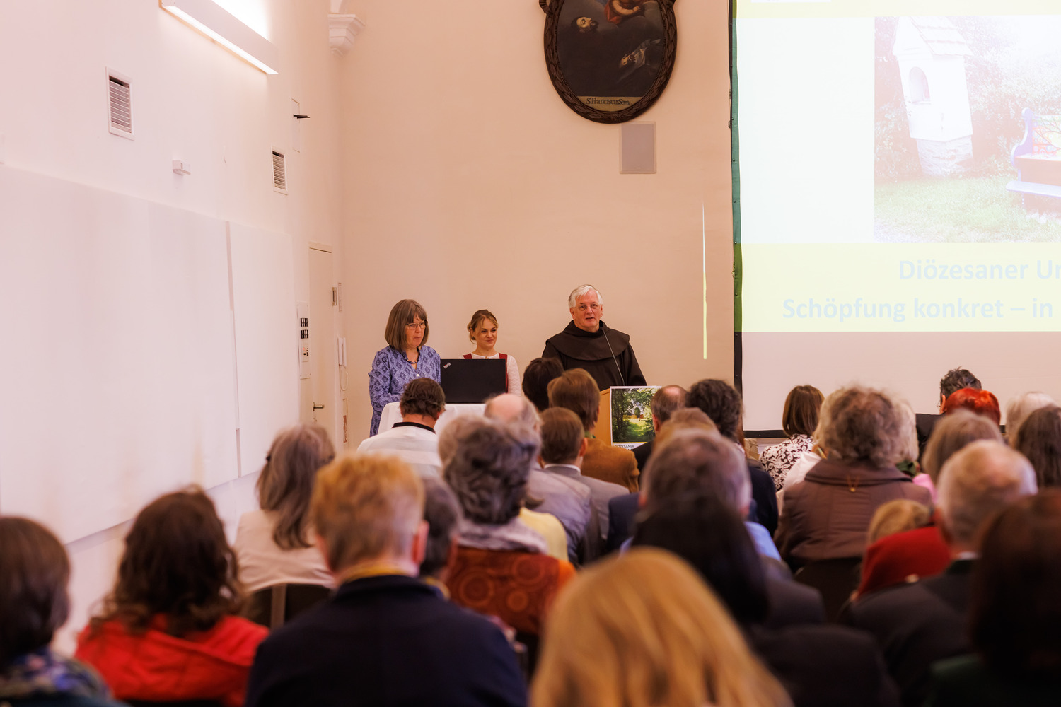 Am 27. April wurden im Bernardinsaal des Grazer Franziskanerklosters die Umweltpreise der Diözese Graz-Seckau übergeben; zum letzten Mal von Hemma Opis-Pieber. „Wie jedes Jahr ist auch diesmal mein Herz voll Freude und Dankbarkeit“, so die langjährige Umweltbeauftragte der Katholischen Kirche Steiermark, „die vielen Initiativen, die Kreativität und spürbare Leidenschaft geben Mut und stärken die Zuversicht. Auffallend ist diesmal die große Beteiligung von Kindern und Jugendlichen“. 18 Pfarren und Institutionen haben sich mit tollen Initiativen beworben. Preise gab es in zwei Kategorien: Die Hauptpreise wurden für vorbildliche Initiativen vergeben, die das Handbuch für die schöpfungsfreundliche Pfarre „PRO SCHÖPFUNG“ umfassend behandeln. Weitere Preise vergab die Jury an Einzelprojekte. Ein Sonderpreis wurde für einen vorbildhaften Energieeinsatz überreicht.