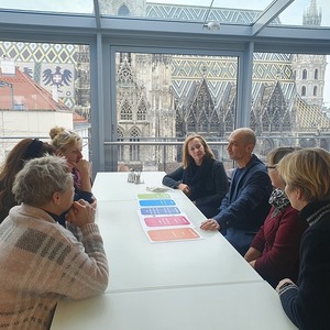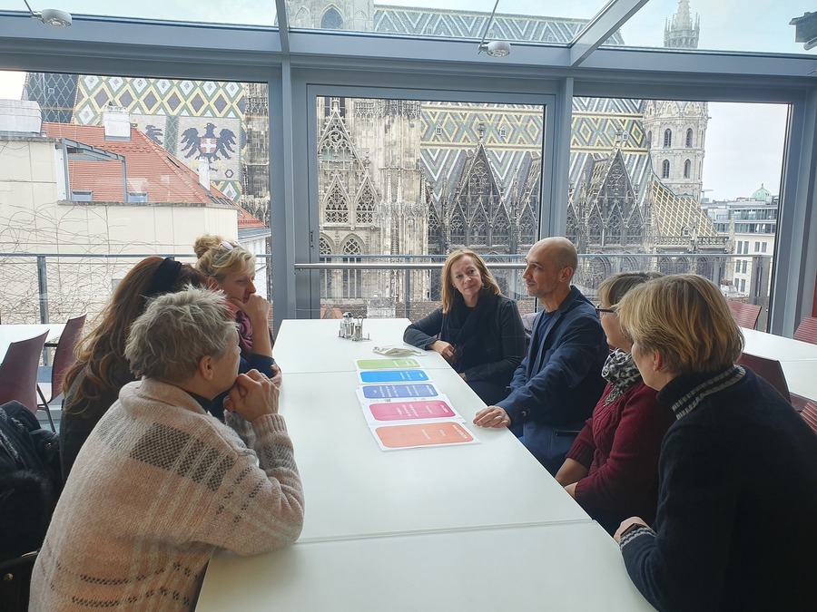 Johannes Ojak informierte uns über die die Struktur der Fachbereiche der Familienstelle in Wien und führte uns anschließend durch die Büros der Fachbereiche in der Erzdiözese Wien - ein Ort mit traumhaftem Blick auf den Stphansdom.