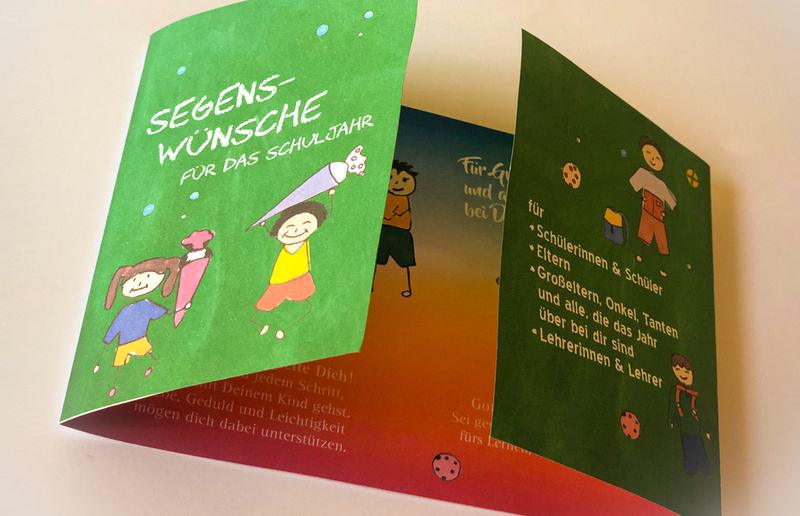 Karten für Mama, Papa, Oma, Opa, Pfarre, Lehrerinnen und Lehrer, um Schulkindern Segenswünsche für einen guten Start ins neue Schlujahr mitzugeben.