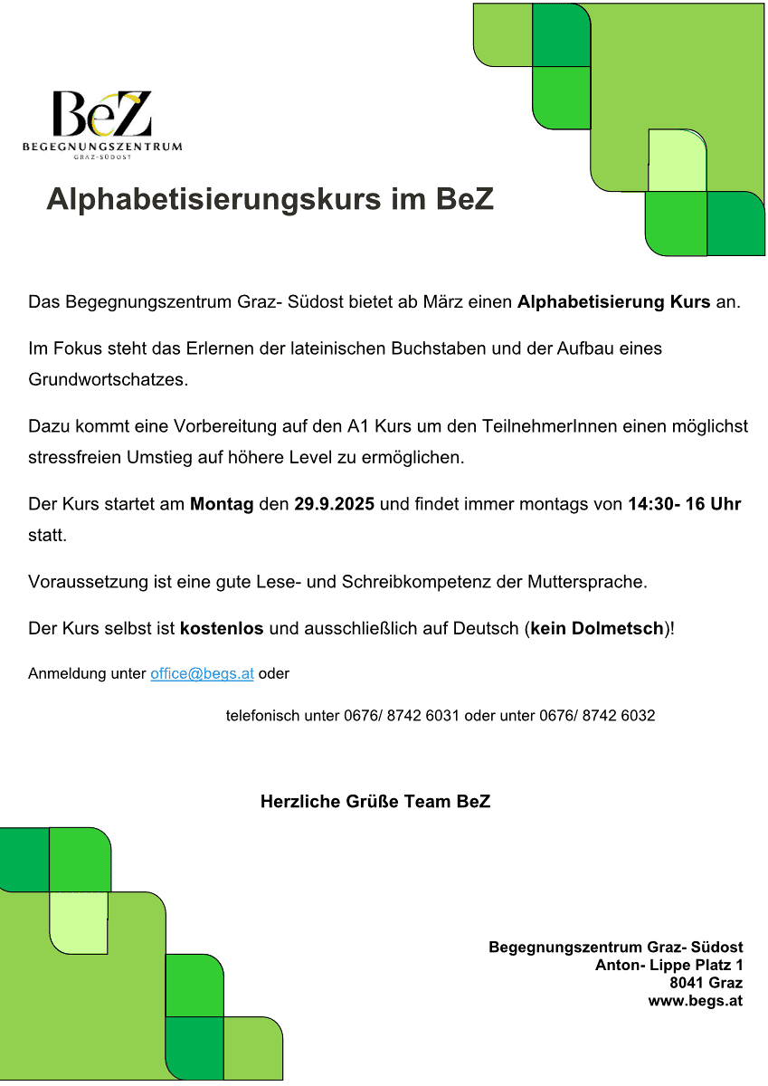 Alphabetisierung Mo von 14:30- 16 Uhr