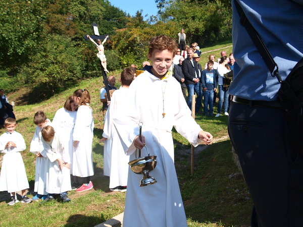 Das Fest der Kreuzerhöhung und Maria 7 Schmerzen waren der Anlass, die neu renovierte Kreuzigungsgruppe des Kalvarienberges von Deutschfeistritz zu segnen.