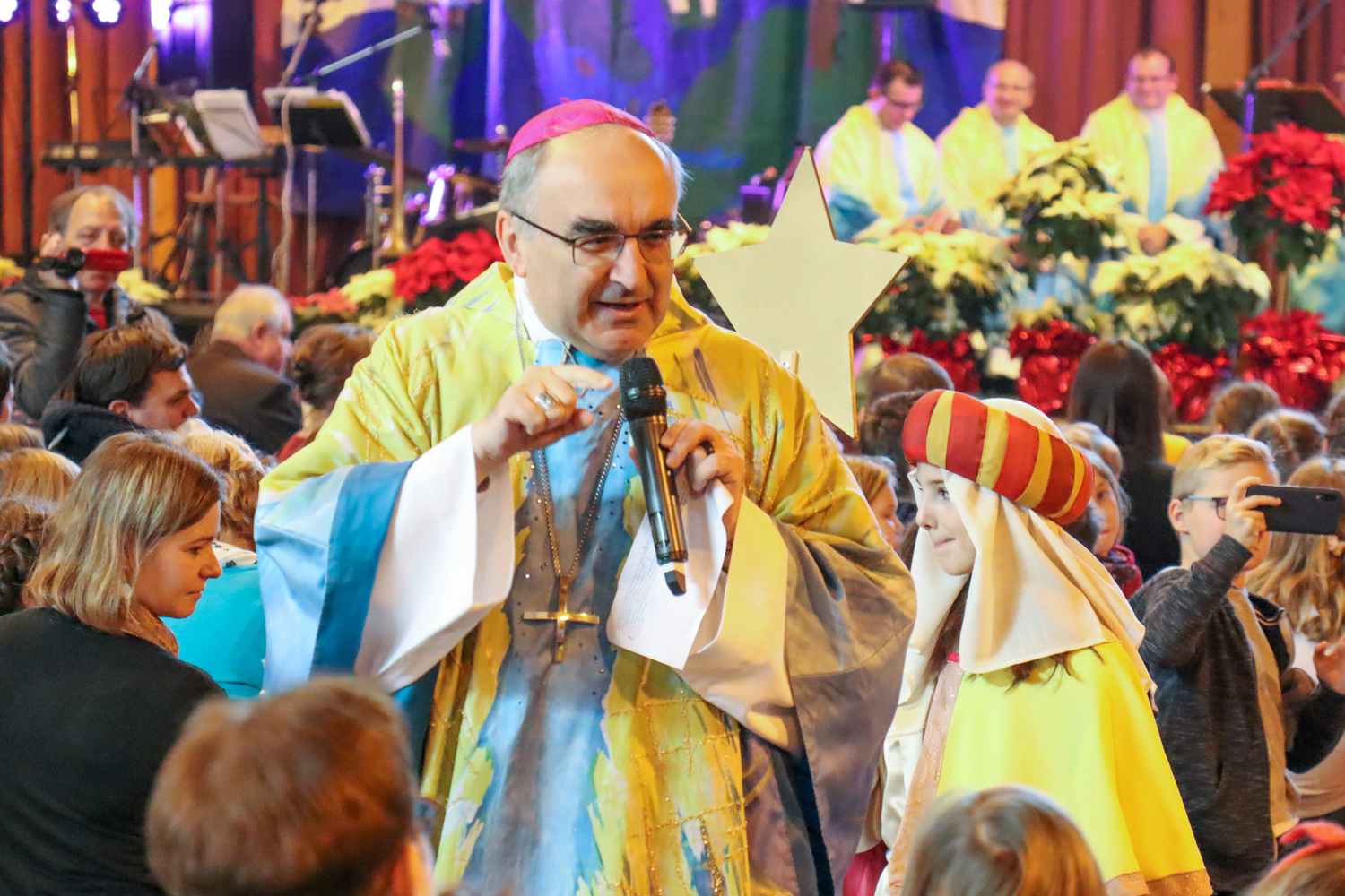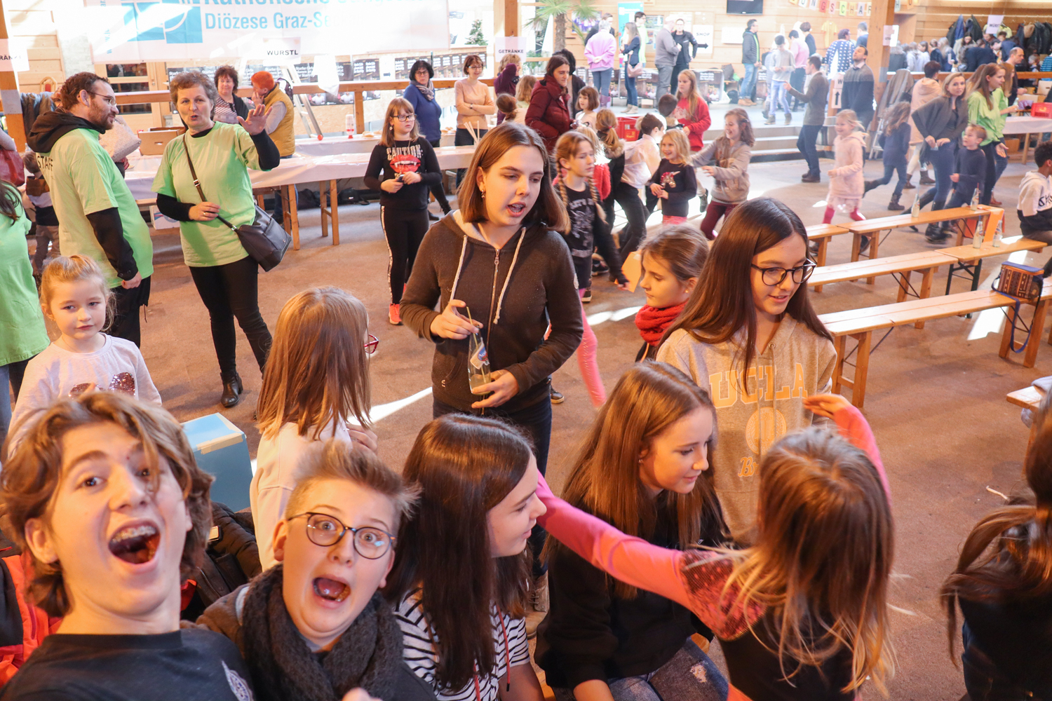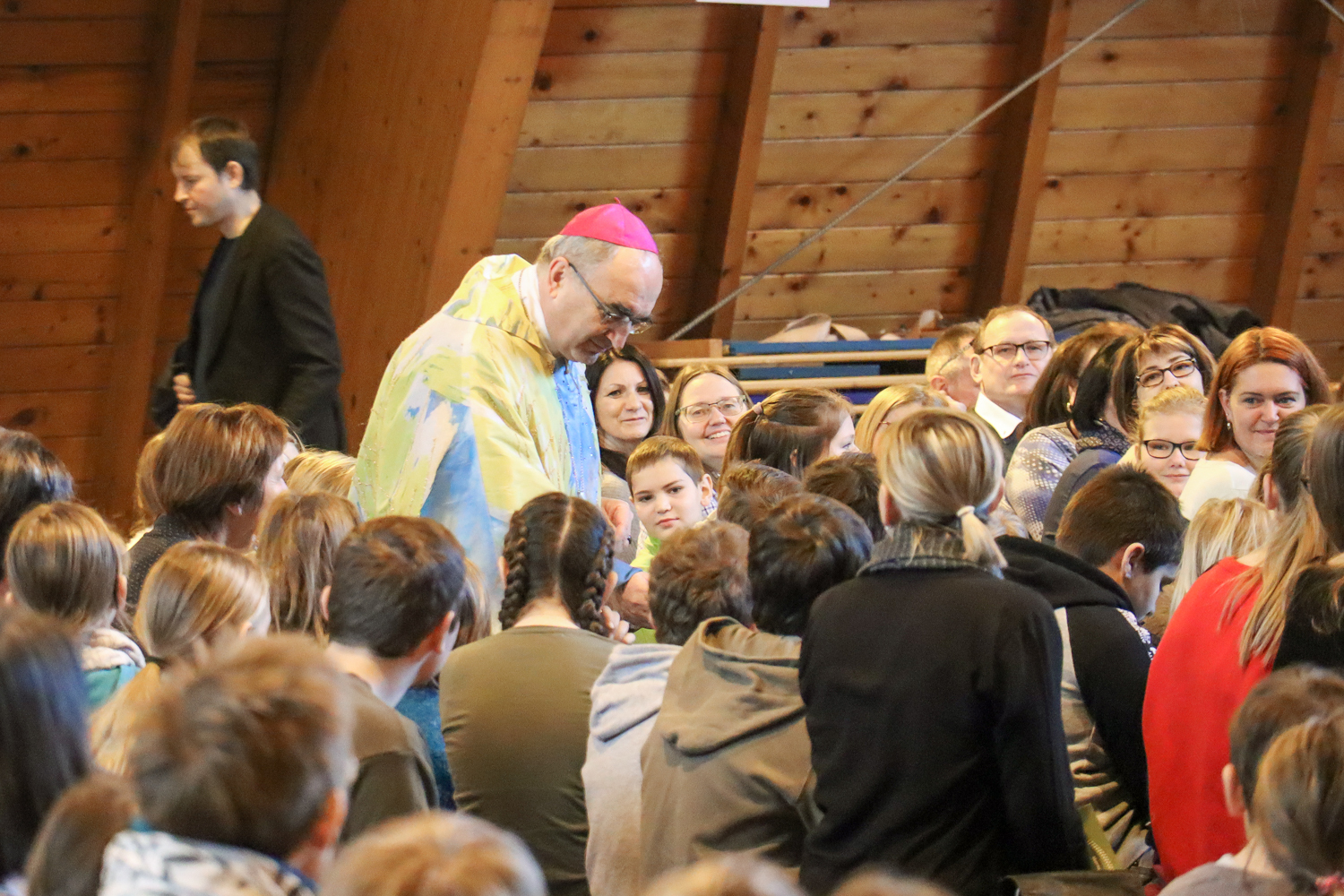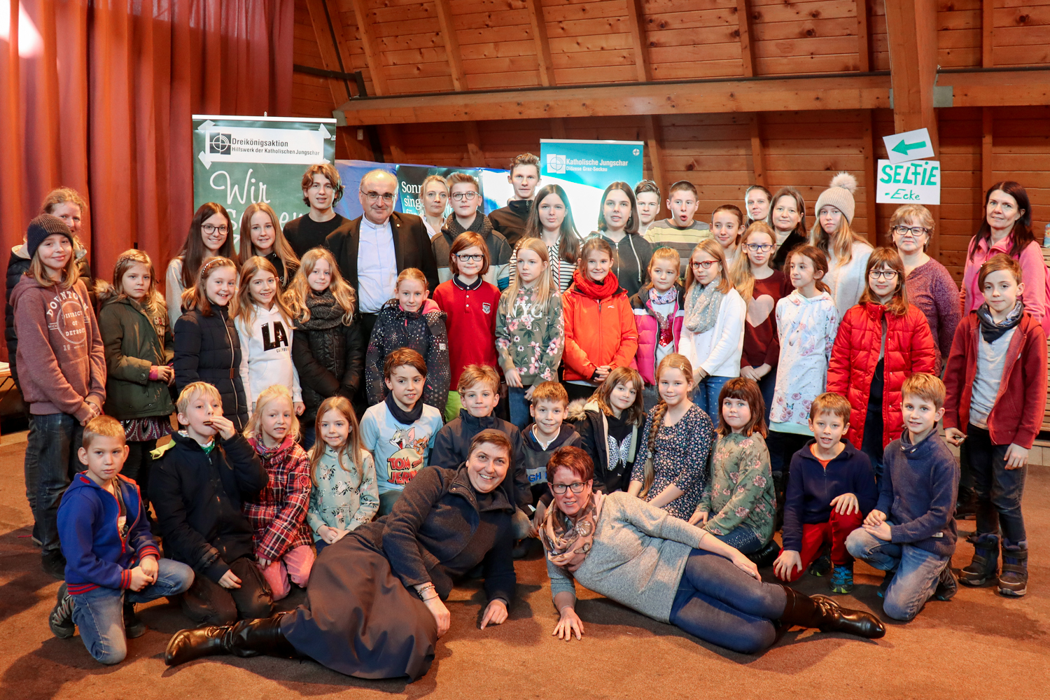 Nach dem traditionellen Würstlessen animierte eine Band die Kinder zum Mitsingen und Mittanzen. Währenddessen stand unser Bischof wieder für Selfies und Gruppenfotos zur Verfügung.