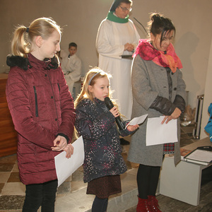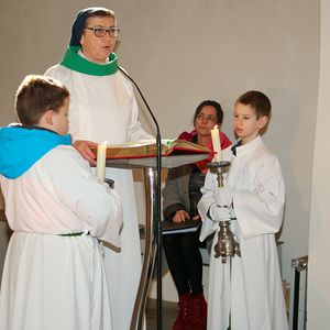 Drei Mütter sprachen bei der Predigt über die Themen aus dem Evangelium (Salz und Licht) und der Taufe. Bei der Taufe stehen drei Symbole im Mittelpunkt: Das Taufwasser, das weiße Kleid und die Taufkerze. Diese Taufkerze brachten die Kinder mit, um sie an der Osterkerze zu entzünden und so an ihre Taufe erinnert zu werden.