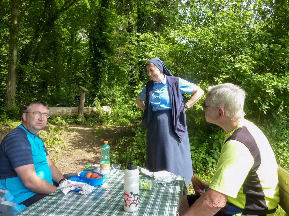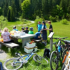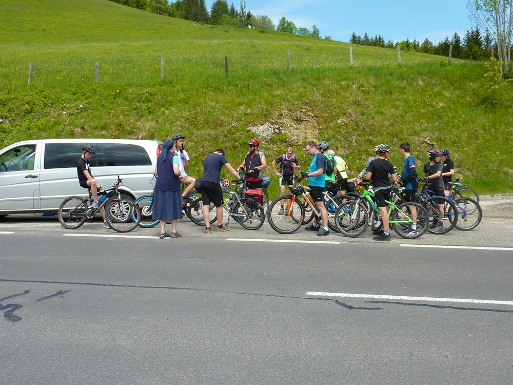 Am 4. Juni starteten wir unsere anstrengende Radtour nach Mariazell. Um 6:30 Uhr ging es los mit einer kleinen Andacht in der Dobler Kirche. Wenige Augenblicke später bekamen wir von Sr. Maria ein kleines Kärtchen, welches uns an die Wallfahrt erinnern sollte. Wir starteten in Dobl und machten uns auf in Richtung Graz. Unsere erste Pause machten wir in Gösting in einem kleinen Park. Nach langer Fahrt, zwei Pausen und einem platten Reifen bei einem der Erwachsenen, kamen wir dann beim Gasthaus Ritschi vorbei, bei dem wir zu Mittag aßen. Etwa 60 km fehlten uns nur noch nach Krieglach, ein bisschen weniger als die Hälfte. Leider stürzte auf unserem Weg Maxi auf den Kopf und war kurz ohnmächtig. Es wurde sofort die Rettung gerufen. Als die Rettung ankam, ging es ihm wieder gut. Sr. Maria fuhr dann mit zum Krankenhaus. Sonst gab es keine schlimmen Stürze. Dann fehlten uns nicht mehr viele Kilometer und am Ende kamen wir in einen kleinen Regen. Wir bekamen beim Gasthof Stocker ein gutes Abendessen und übernachteten dort auch. Doch wir mussten am nächsten Tag schon sehr früh aufstehen. Nach dem Frühstück ging es auch schon weiter Richtung Mariazell. Am Samstag gab es starke Steigungen. Nach ein paar Pausen und einigen Höhenmetern kamen wir um ca. 13 Uhr in Mariazell an. Dort haben wir zu Mittag gegessen und uns dann Mariazell angeschaut. Um 17 Uhr feierten wir einen Gottesdienst mit Abt Philipp vom Stift Rein und haben uns anschließend auf den Weg nach Hause gemacht. Danke für den schönen Ausflug!