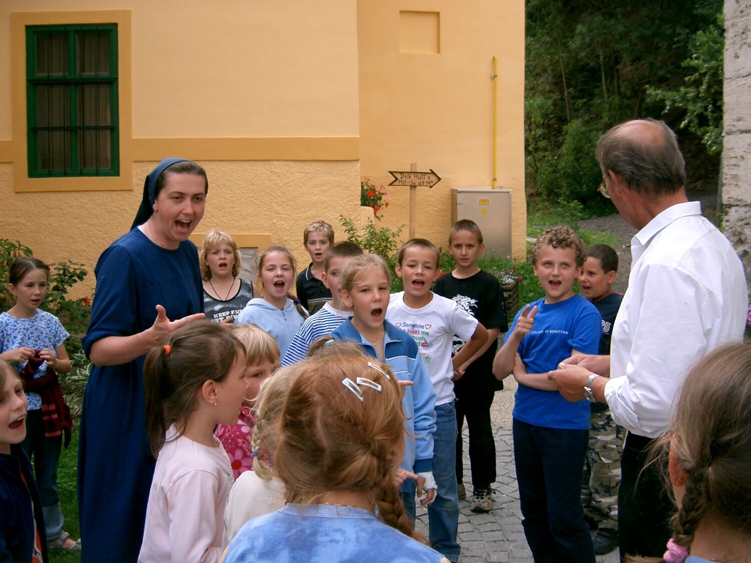 Sr. Maria leitet den bunt gemischten Chor.