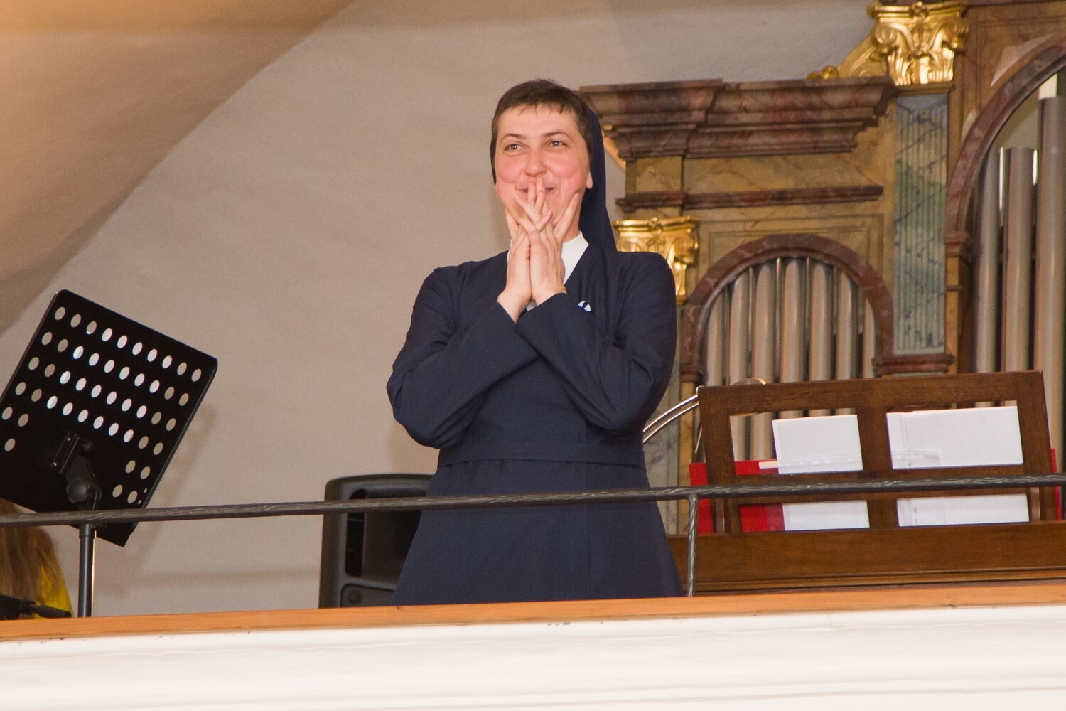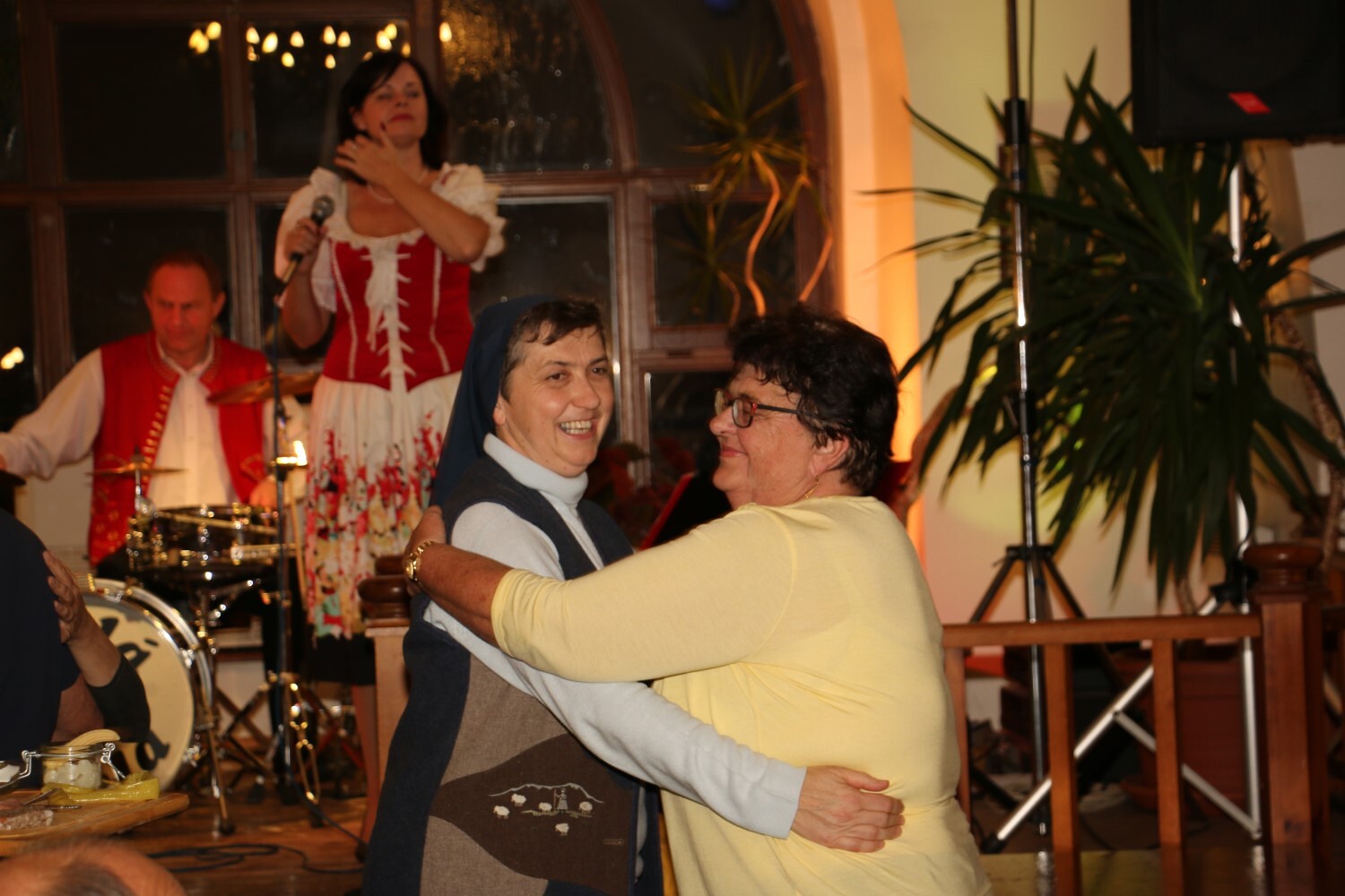 Sr. Maria tanzt zur traditionellen Musik