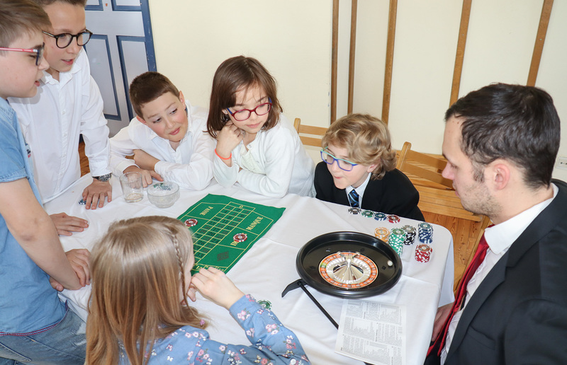 Nach zwei spannenden Stunden ging der Besuch in der Spielbank leider schon wieder zu Ende. Zum Abschluss wurden die Schulden an die Bank zurückgezahlt, die Sieger gekrönt und die restlichen Jetons noch in Naturalien umgetauscht.