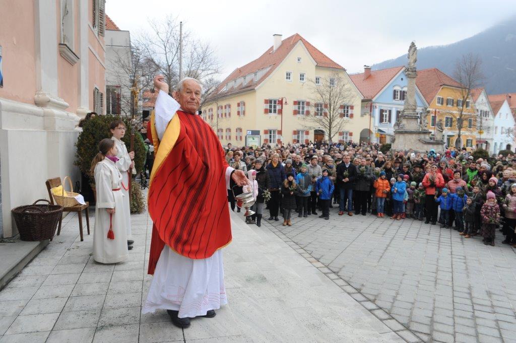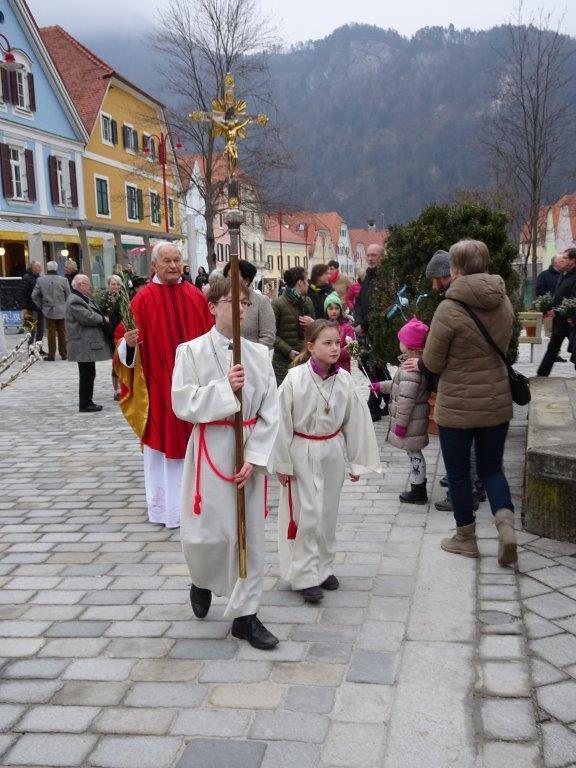 Am Palmsonntag fanden um 8.30 Uhr die Palmweihen durch Pater Dominikus in Adriach beim St.-Georgs-Bildstock mit anschließender Prozession zur ehrwürdigen St.-Georgs-Kirche und hl. Messe sowie durch Pater Simon vor der Pfarrkirche mit Prozession um die Mariensäule und Eucharistiefeier in der Kirche statt. Dabei wurden auch Ölzweige an die Gläubigen verteilt, die trotz kalter Witterung und Umstellung auf die Sommerzeit recht zahlreich erschienen sind.
