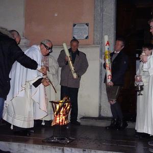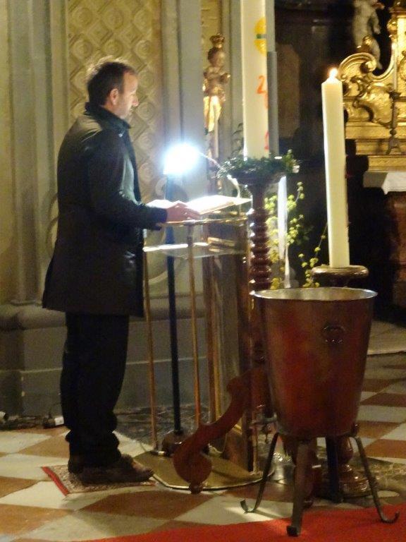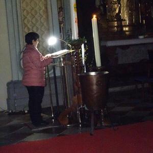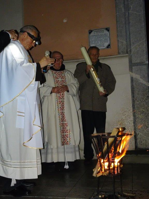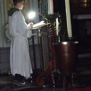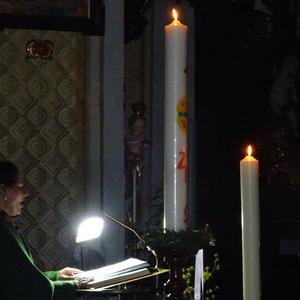 Die Osternachtsfeier war sehr lang, sie schloss alles ein, was für die Gläubigen mit der Auferstehung Jesu verbunden ist: mehrere Lesungen, eine Lichtfeier, einen Wortgottesdienst und die Eucharistiefeier. Die Feier endete schließlich mit dem feierlichen Ostersegen!