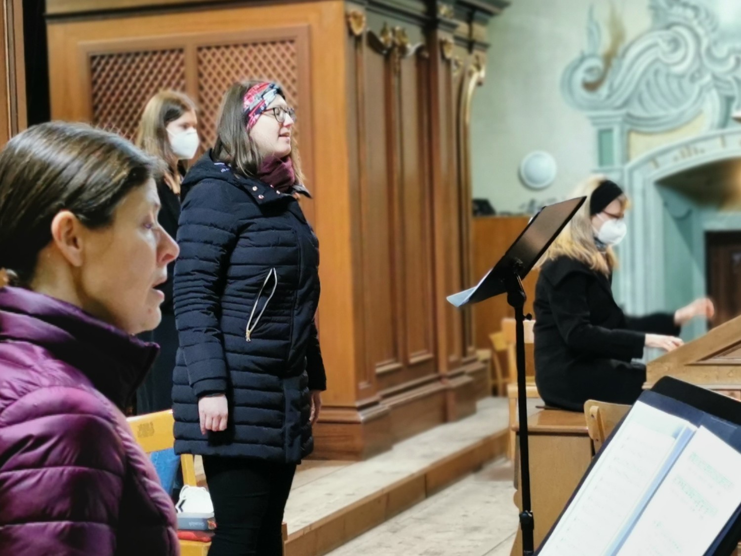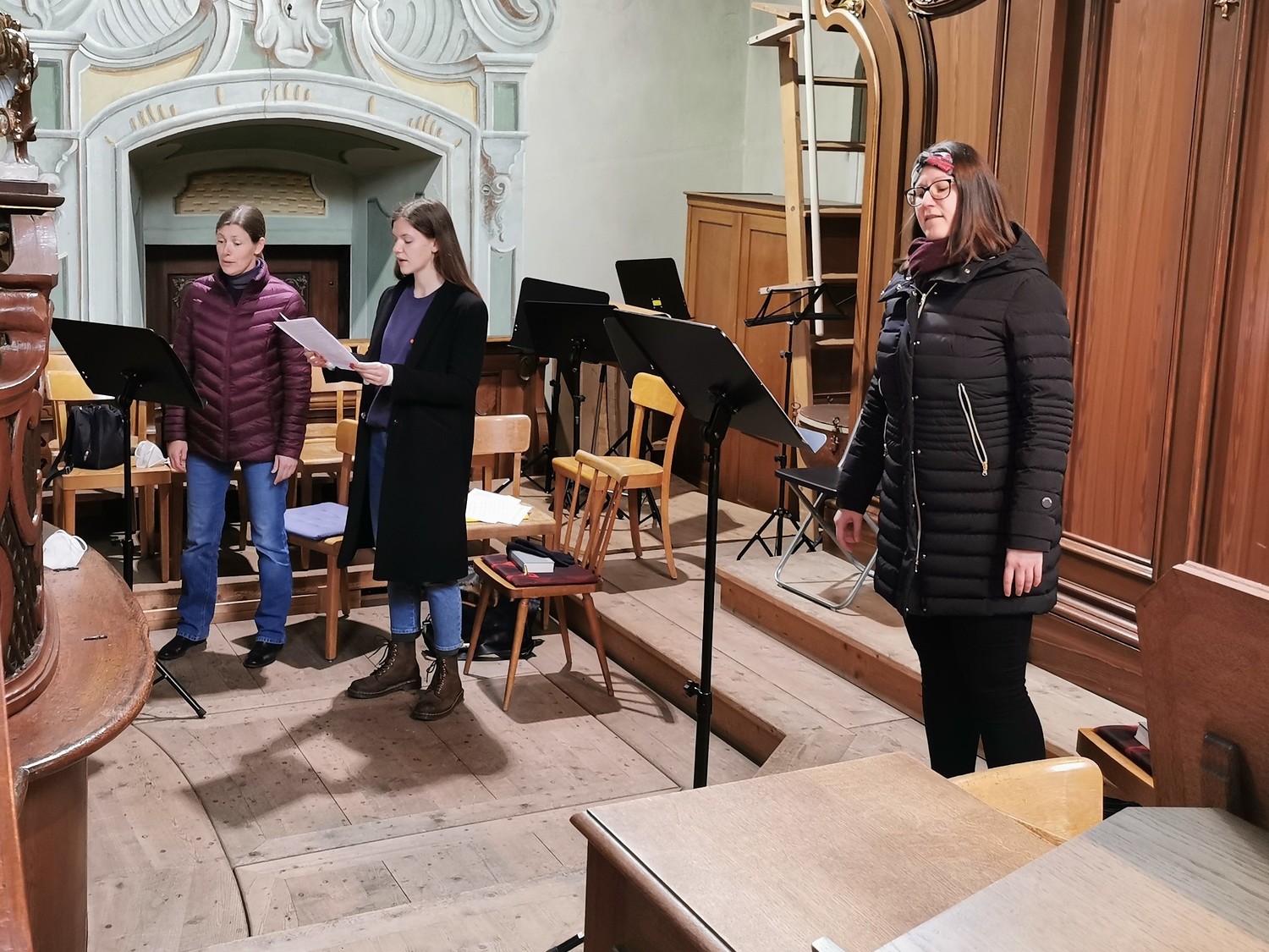 Die übrigen Gesänge der Messe erklangen im Wechsel zwischen dem Terzett und dem Kantor Rainer Schmutz zusammen mit der Organistin Christina Eichberger.