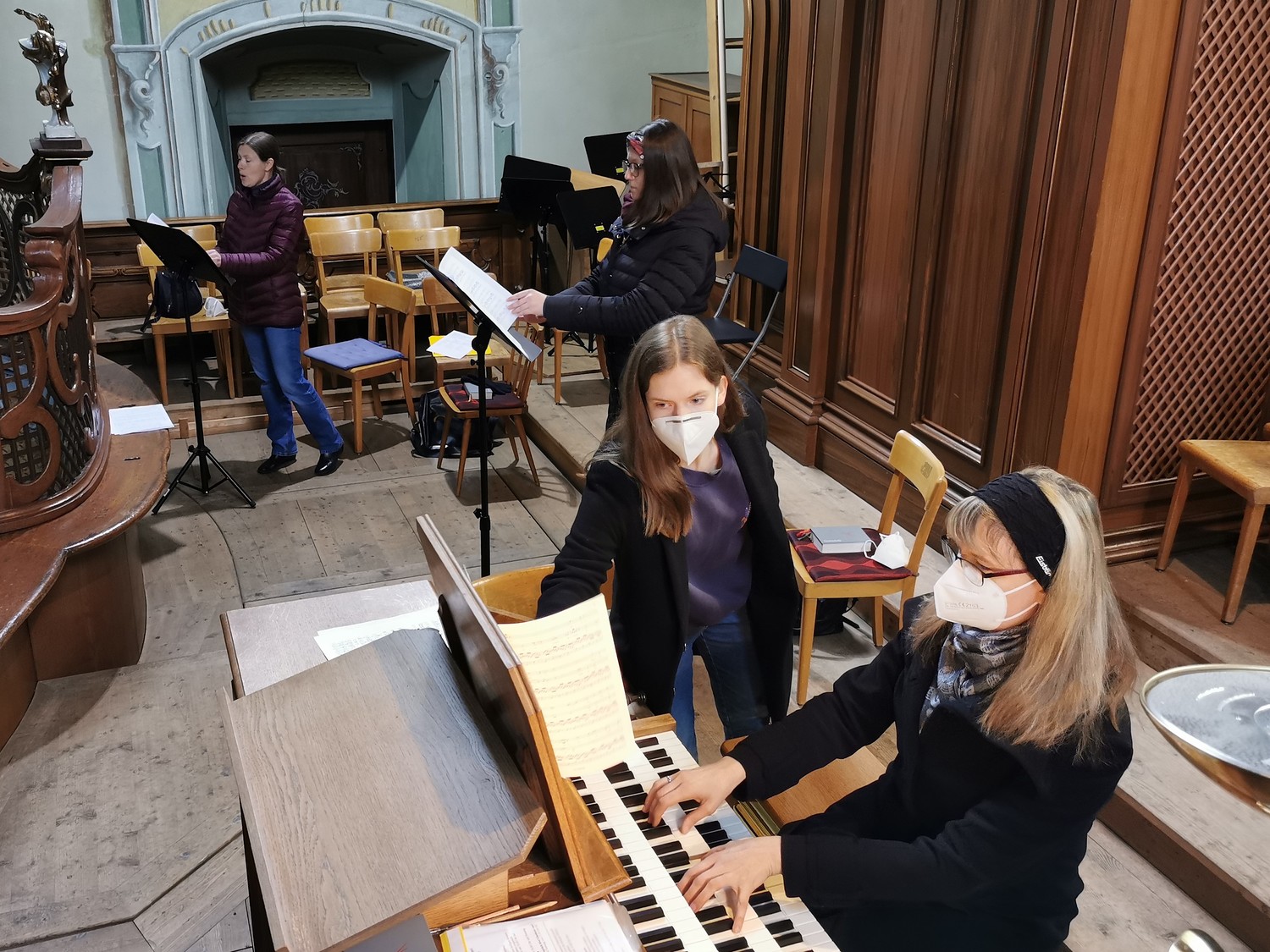 Unsere Sängerinnen Eva Heißmann-Zabini, Lena Zabini und Verena Waidacher sangen das zuversichtliche Terzett „Hebe deine Augen auf“ aus dem Oratorium „Elias“ von Felix Mendelssohn-Bartholdy. Außerdem waren das Duett „O dulcis Jesu“ von Chiara Maria Cozzolani und der letzte Satz aus dem berühmten „Stabat mater“ von Giovanni Battisata Pergolesi zu hören, von der Chorleiterin Miriam Ahrer an der Orgel begleitet.