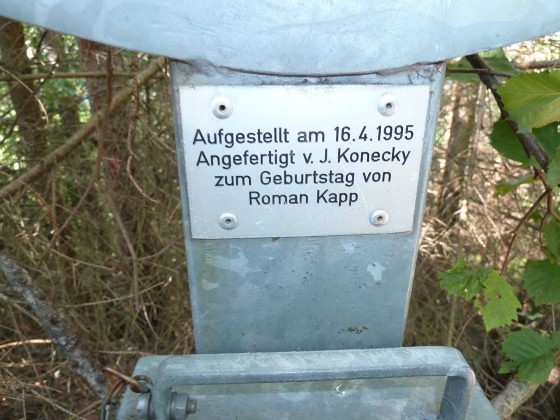 Romans Schwager, ein gelernten Schlosser, schmiedete das 2,1 Meter hohe und 1,15 Meter breite Kreuz aus Eisen in Wien und fertigte auch den Behälter für den Stempel an. Ende März stiegen drei tüchtige Männer zum Gipfel auf, ortsüblich „Gschwendt“ genannt, und errichteten dort heimlich auf einer kleinen Kuppe des Berges ein Betonfundament. Am Karsamstag des Jahres 1995 schließlich wurde das Kreuz aus Wien antransportiert, dem Jubilar im Tal übergeben und dann über das steile und felsige Gelände auf den Berg gebracht (Aufstiegszeit: 1,5 Stunden) und dort aufgestellt. An einer nahen Fichte befestigte man eine Metallkassette für das Gipfelbuch. Am Ostersonntag, dem 16. April 1995, gestaltete Pastoralassistent Hans Paier eine Gipfelkreuzfeier, bei der das Kreuz gesegnet wurde. Die Verwandten und zahlreichen Bergkameraden von Roman Kapp nahmen daran teil. Im April 1997 widmete der emsige Bergsteiger Felix Köhldorfer (+ Dezember 2010) Roman zum neuerlichen Geburtstag eine Rastbank auf dem Gipfel mit der Aufschrift „Roman`s Ruhe“, die nun neben dem Kreuz steht.