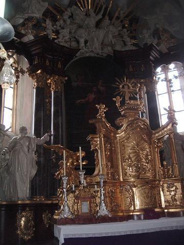 Der dunkle Gesamteindruck des Bildes zur farbenprächtigen Malerei des Kirchenraumes ist im Blick auf den Hochaltar eine Herausforderung zum Augenfasten, um Christus zu erkennen. Sein Wort: „Meine Seele ist betrübt bis in den Tod, bleibet hier und wachet“ (Markus XIV–32).