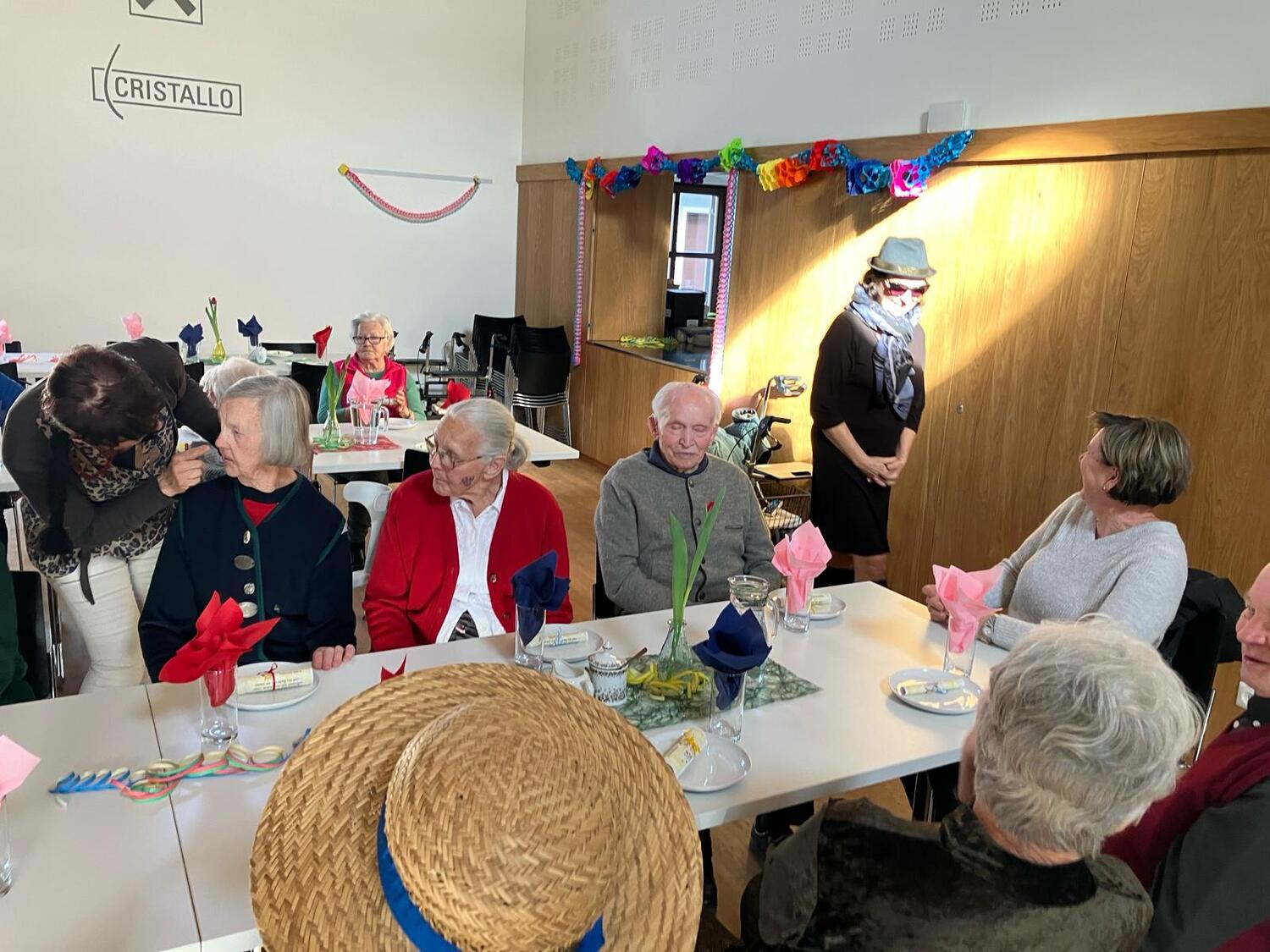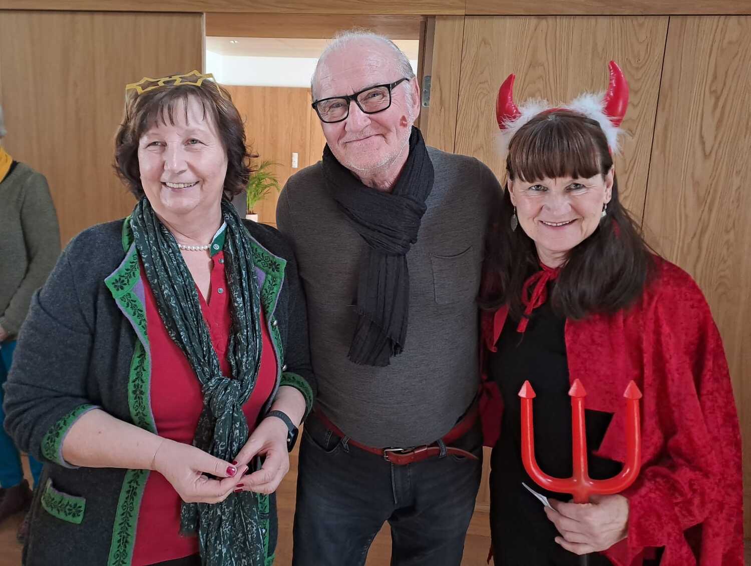 Der Höhepunkt des Nachmittags waren Mori Hans und Tschernko Karl. Die zwei Musikanten unterhielten die Feiernden mit ihrer Musik und Witzeinlagen köstlich. Bei Krapfen, Strauben, Kaffee und Wein wurde viel geplaudert, gesungen und gelacht.