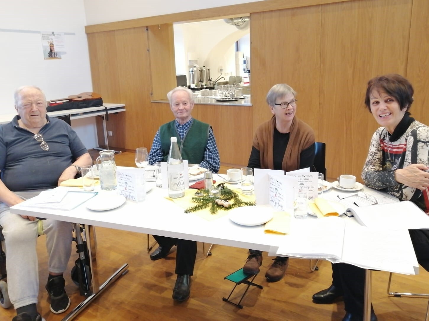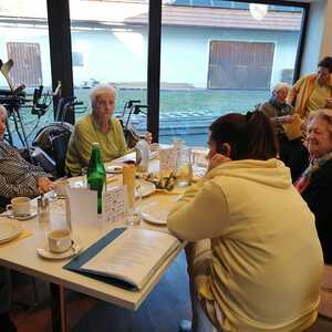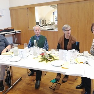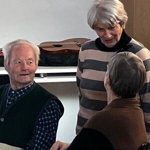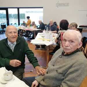 Das Team um den Se­ni­or­en­nach­mit­tag bietet den Be­such­er­:in­nen mit vie­len neu­en Ideen im­mer wie­der ein ab­wech­slungs­rei­ches Pro­gramm. So stand der Be­geg­nungs­nach­mit­tag im Jän­ner unter dem Motto "Sin­gen macht glück­lich". Be­son­ders kräf­tig un­ter­stütz­ten Herr Franz Riedl und Frau Emmy Ertl die Sin­gen­den mit Ihren Stim­men.