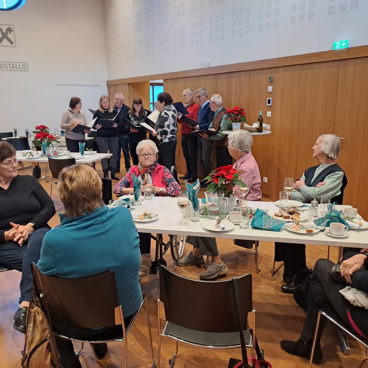 Der Kirchenchor, unter der Leitung von Brigitte Resch, umrahmte den Nachmittag mit einigen stimmungsvollen Weihnachtsliedern. Die schönen und lieblichen Stimmen weckten viele Erinnerungen an Weihnachten von früher und heute, die gerne ausgetauscht wurden und so wurde es ein sehr herzerwärmender, gemeinschaftlicher Nachmittag.