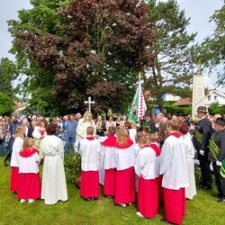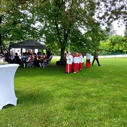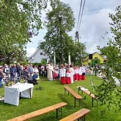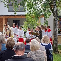 Gemeinsam mit der Pfarre Tobelbad feierten wir das Fronleichnamsfest beim Dorfkreuz in Lieboch. Der auferstandene Herr Jesus, der in der Gestalt des Brotes gegenwärtig ist, steht im Mittelpunkt.