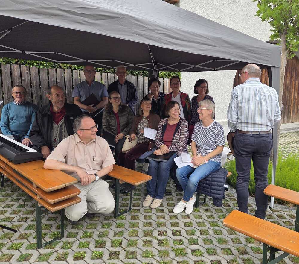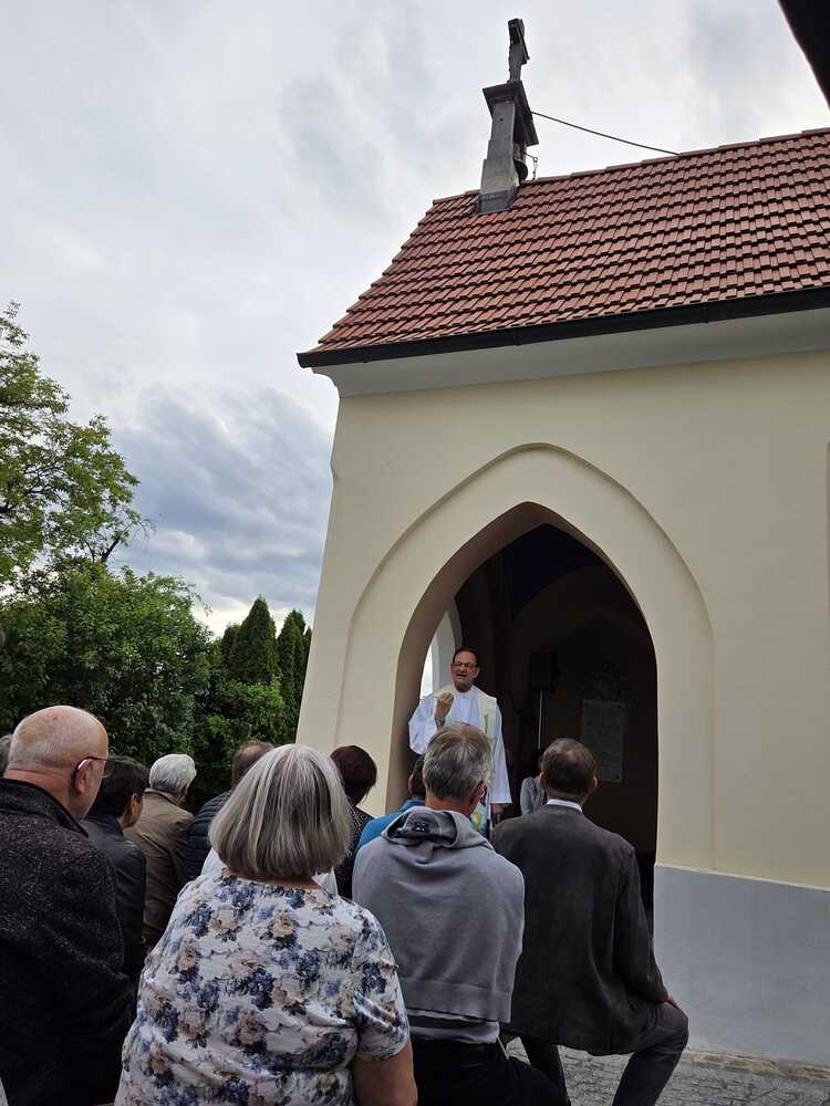Rund 60 Personen feierten mit Vikar Gerhard Hatzmann und dem Kirchenchor die traditionelle Bittmesse vor Christi Himmelfahrt bei der Spatenhofkapelle der Familie Plaschzug. Bei einer Agape gab es noch regen Austausch, Gesang und Gelächter. Danke für die Aufrechterhaltung dieser Tradition in der kleinen Marienkapelle.