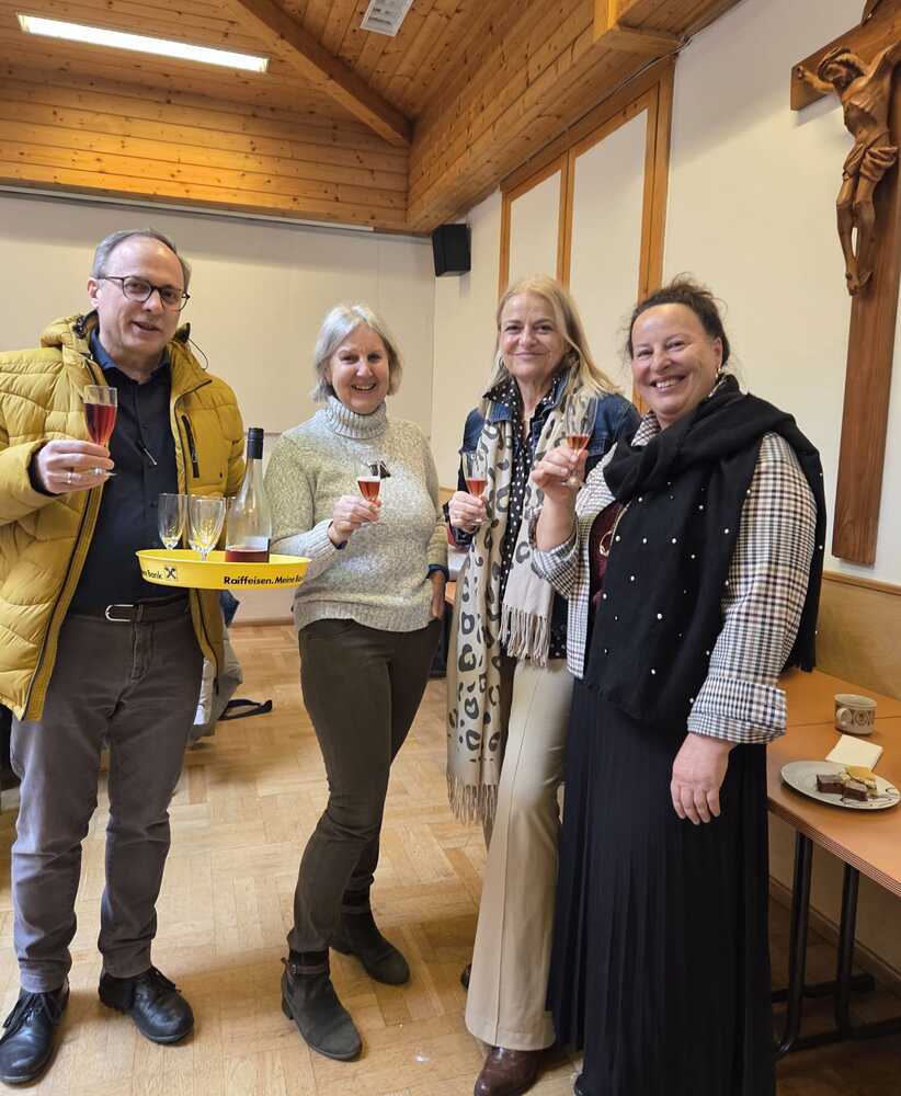 Nach dem musikalisch wunderbar umrahmten Gottesdienst begrüßten die KirchenchorsängerInnen  die BesucherInnen "mit an schean G'sang" und luden zu einem gemütlichen Beisammensein im Pfarrsaal ein.