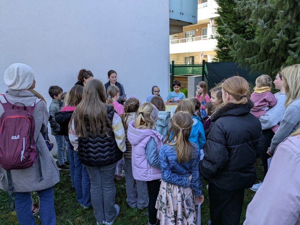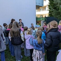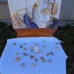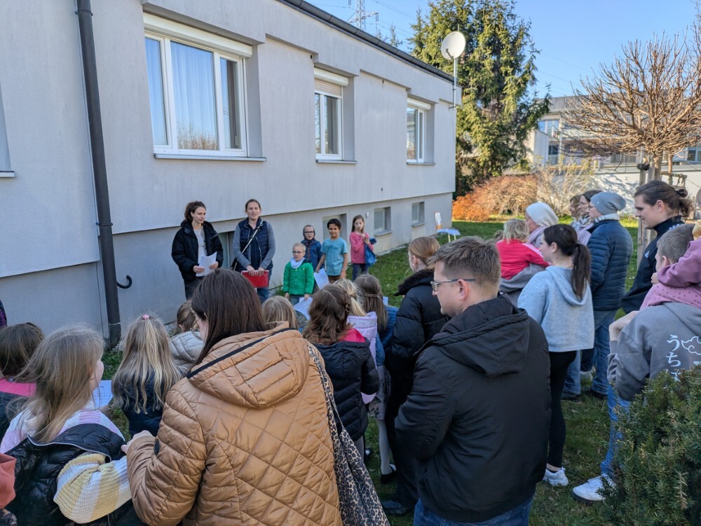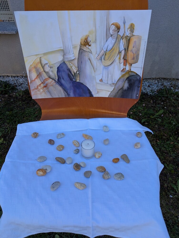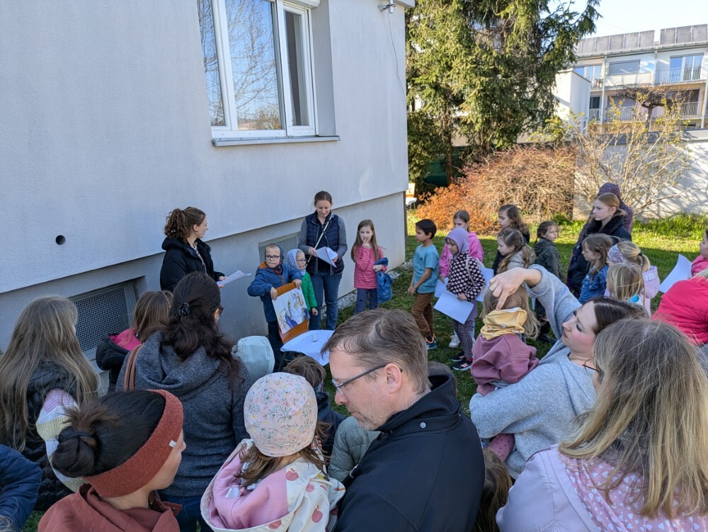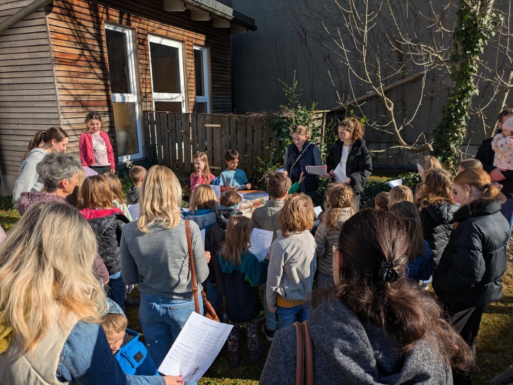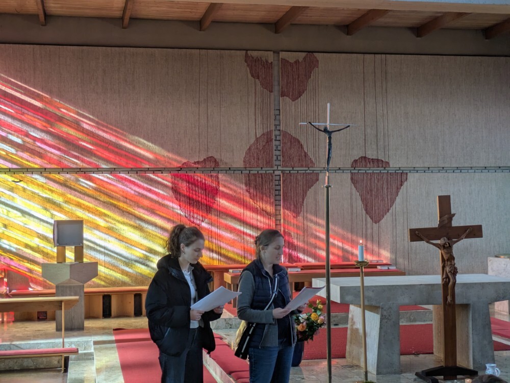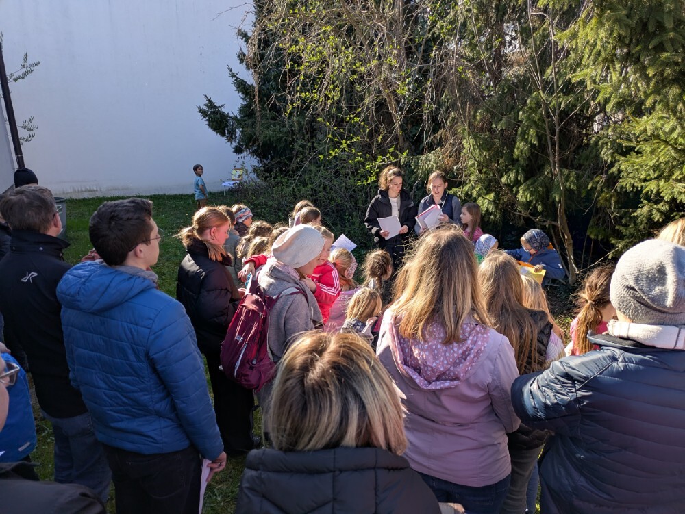 Beim Kinderkreuzweg wurde zirka 30 Kindern die Leidensgeschichte Jesu mit Symbolen und Bildern rund um Kirche und Pfarrheim von Monika Rainer und Julia Herk-Pickel kindgemäß nahegebracht.