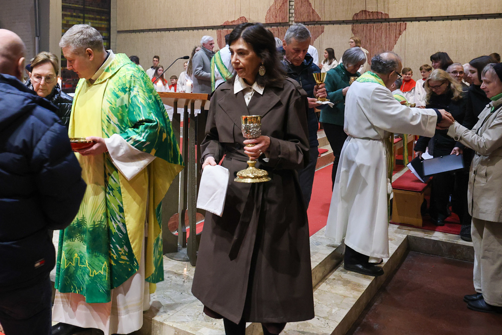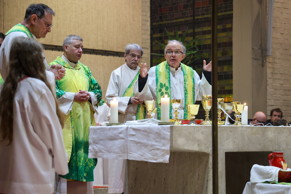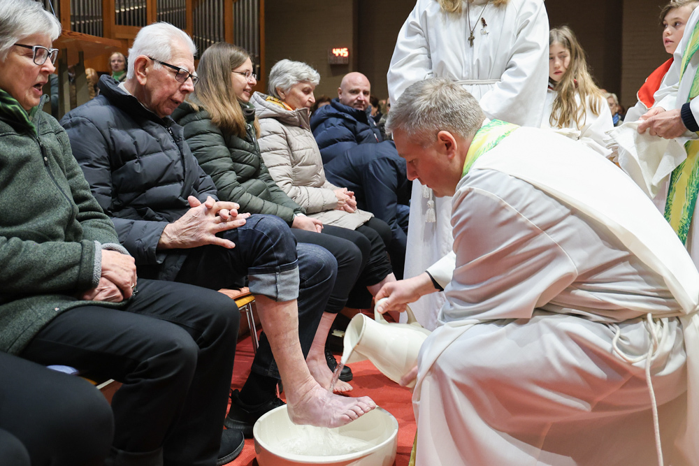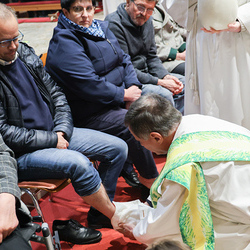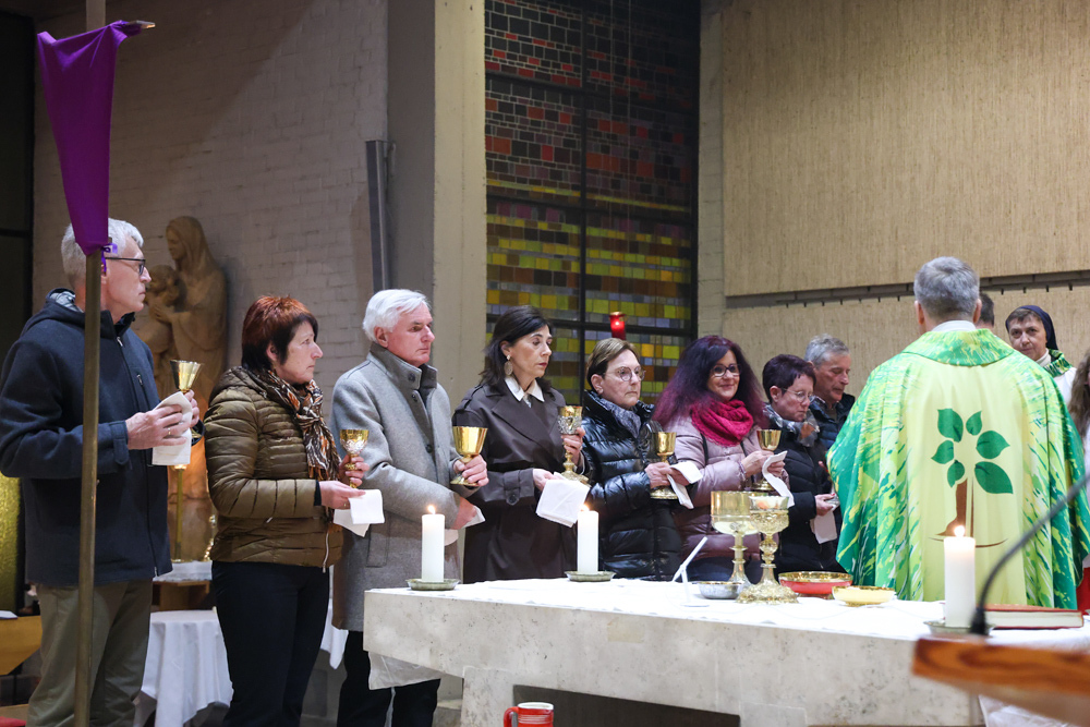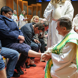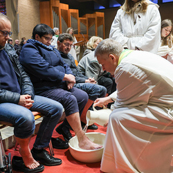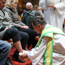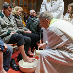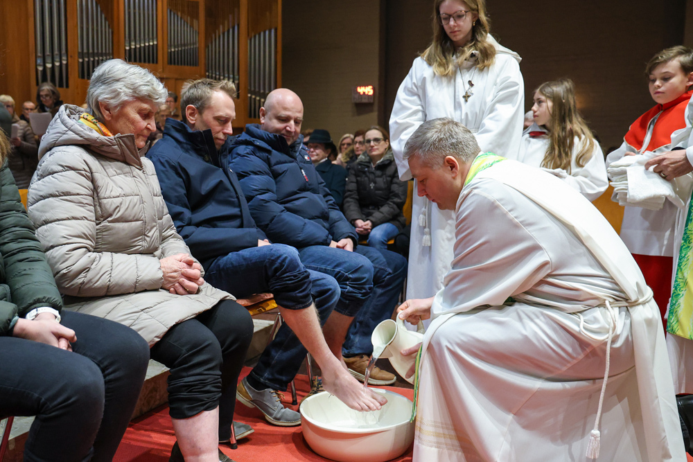 Bei diesem Mahl nahm Jesus das Brot, brach es, reichte es seinen Jüngerinnen und Jüngern und sagte: „Das ist mein Leib, der für euch hingegeben wird.“ Doch Jesus ging noch einen Schritt weiter: Er wusch die Füße seiner Freunde – nicht als Zeichen von Macht, sondern von Liebe und Dienstbereitschaft. Deshalb wurden stellvertretend zwei Personen jeder Pfarre von Pfarrer Claudiu Budău und Diakon Franz Habith die Füße gewaschen.