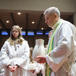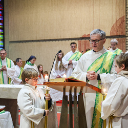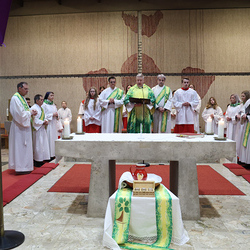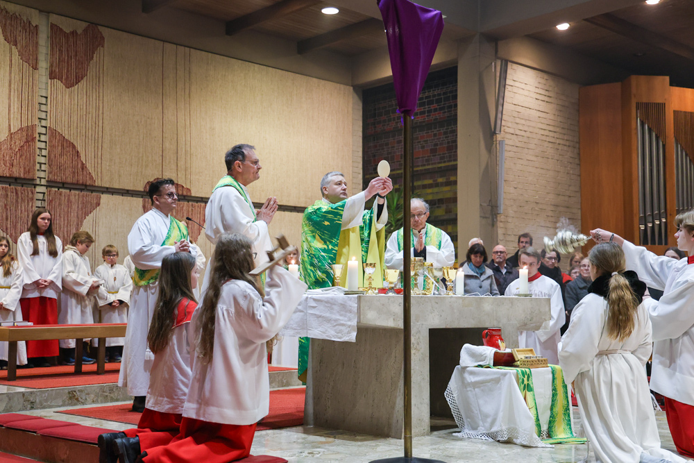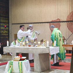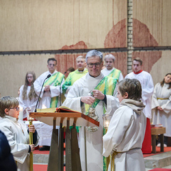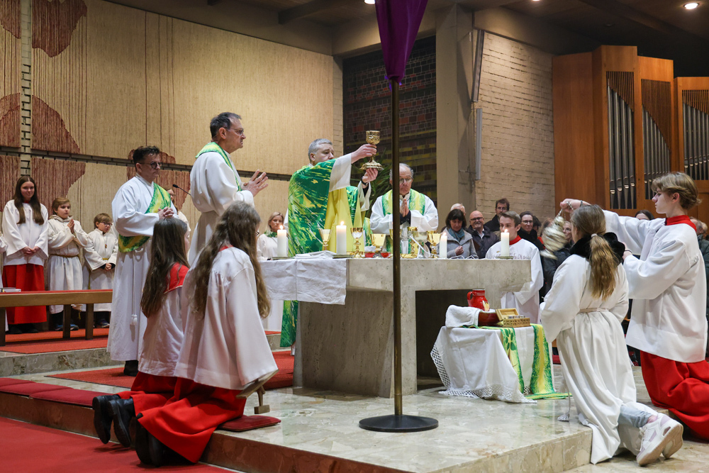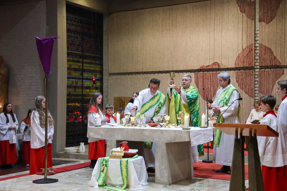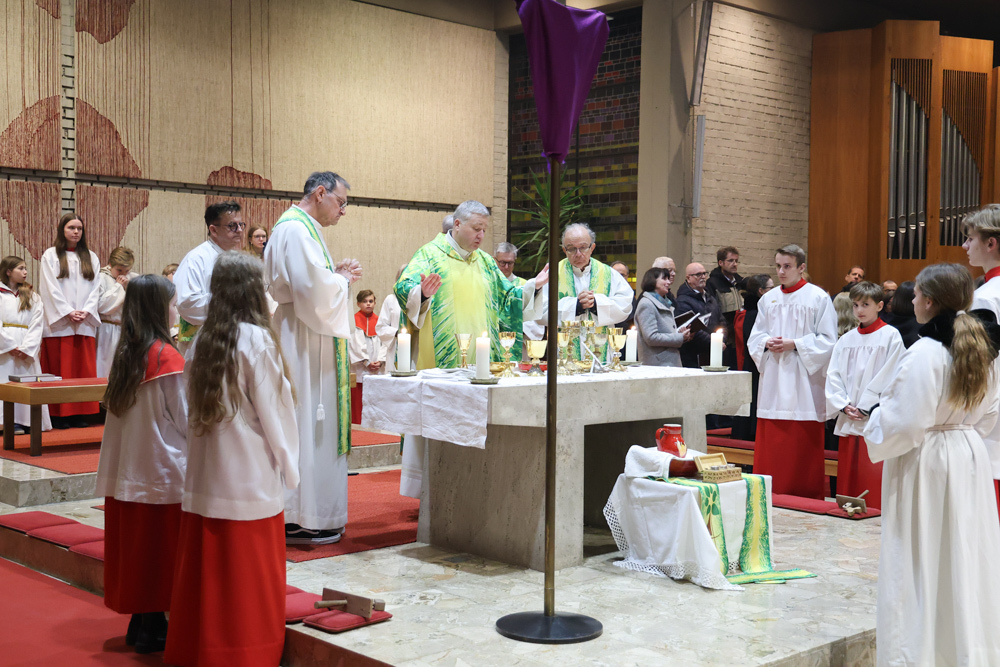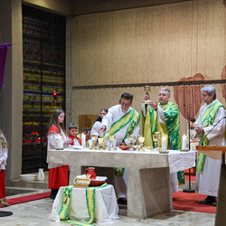 Musikalisch wunderbar umrahmt wurde die Feier vom Seelsorgeraumchor unter der Leitung von Siegfried Kager. Im Altarraum feierte unser gesamtes Seelsorgeteam sowie die Diakone mit. Nicht zu vergessen die etwa 20 Ministrantinnen und Ministranten aus unseren Pfarren. Auch Lektoren und Kommunionspenderinnen aus allen sechs Pfarren gestalteten die Feier mit.