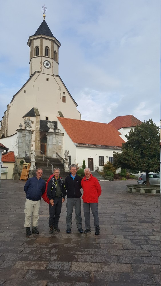 Am zweiten Tag führte uns der Weg - alle gut beschirmt (siehe Foto) - bei nassfeuchtem Wetter weiter nach Gamlitz. An der Ratscher Weinstraße überquerten wir die Staatsgrenze nach Sveti Kungota. Die Nächtigung erfolgte in Marburg.
