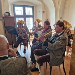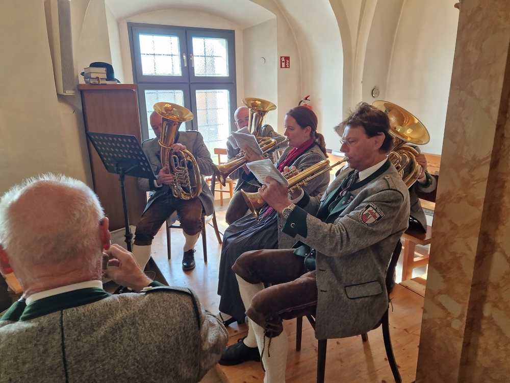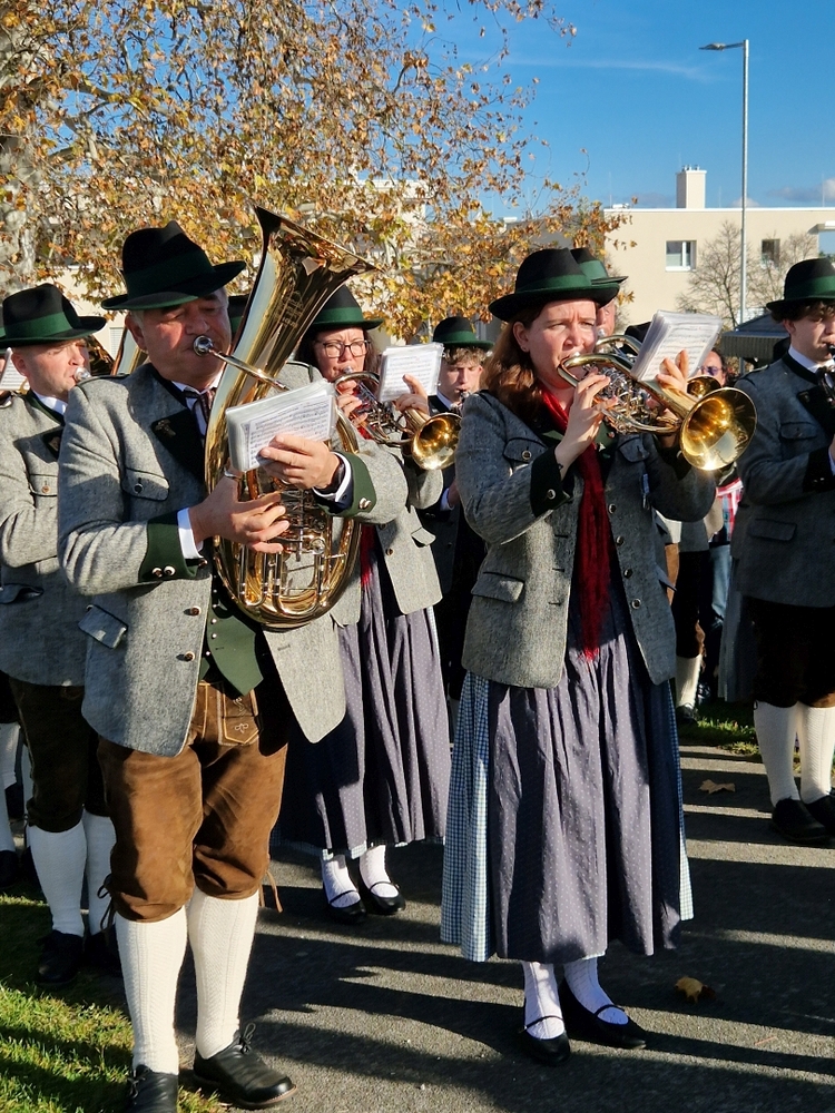 Musikalisch gestaltete eine Abordnung der MUZ von der Empore aus die heilige Messe - und auch danach beim Totengedenken mit Kranzniederlegung vor dem Kriegerdenkmal waren die Musiker*innen zur Stelle.