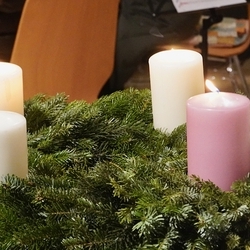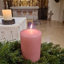 Die Vorfreude steht im Mittelpunkt des Gaudete-Sonntags! Daher erstrahlt als dritte Kerze die rosafarbene, die den hellen Charakter dieses Sonntags betont.