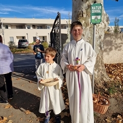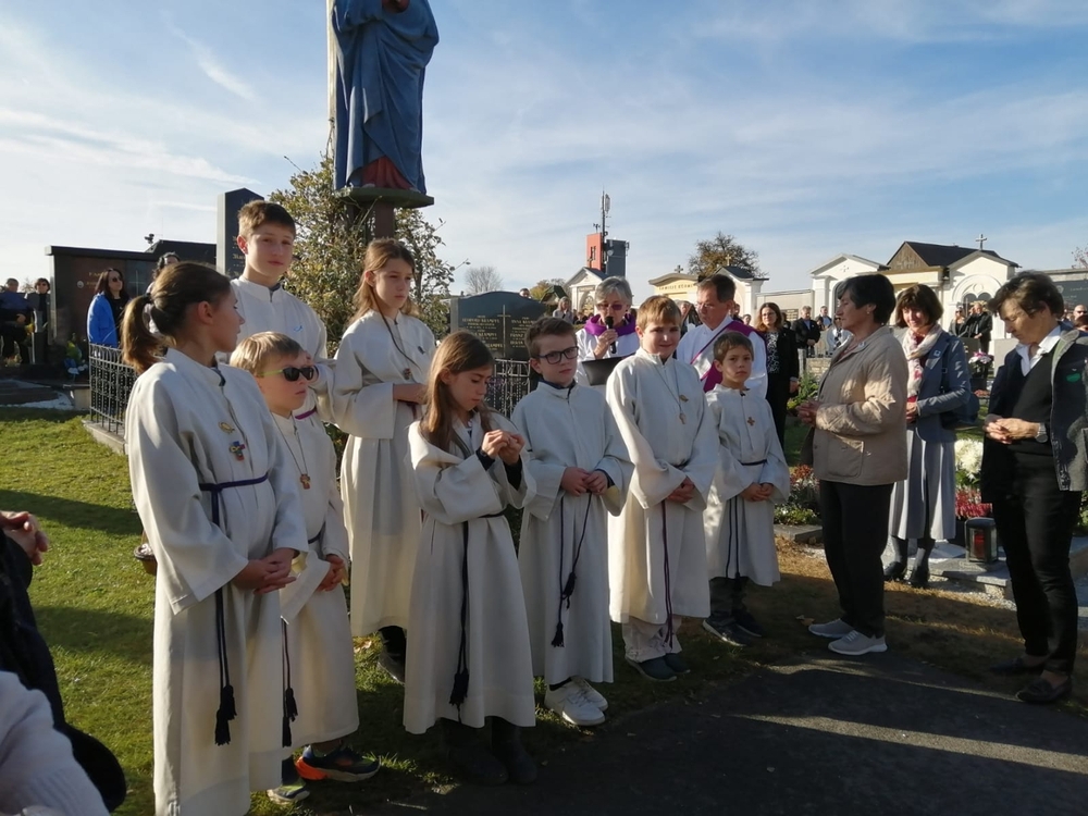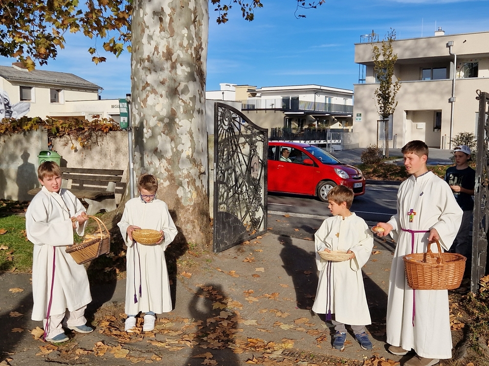 Zum Abschluss boten die bei der Feier fleißig assistierenden Minis an den Friedhof-Ausgängen gegen freiwillige Spende ihre am Vortag gebackenen Allerheiligenstriezerl an, die im Nu ausverkauft waren!