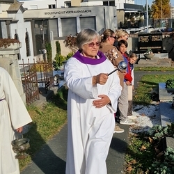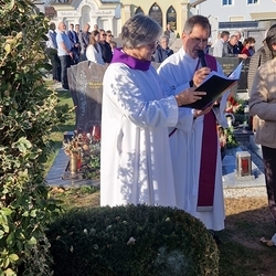 Bei strahlendem Herbstwetter segneten Diakon Franz Habith und Wort-Gottes-Feier- Leiterin Christa Habith die Gräber auf unserem Friedhof.