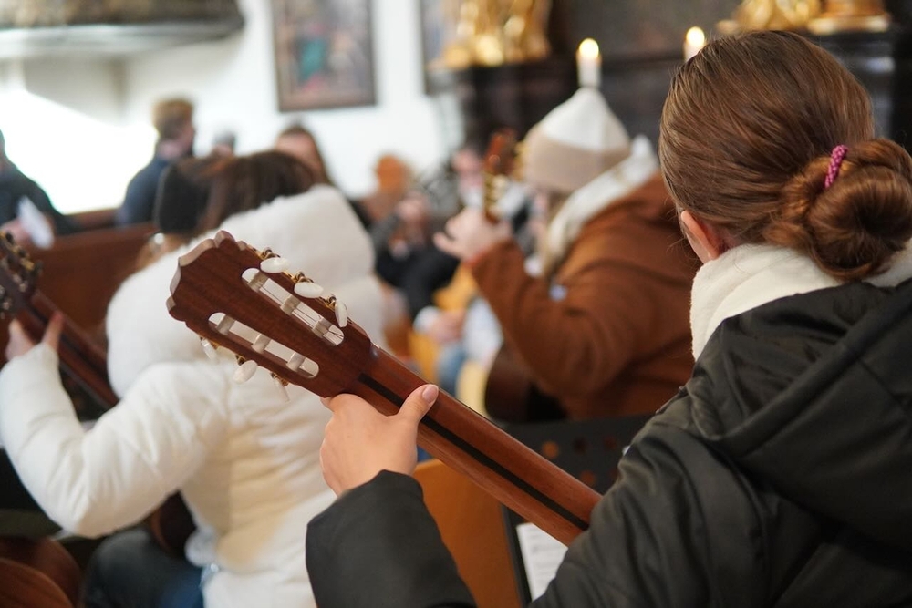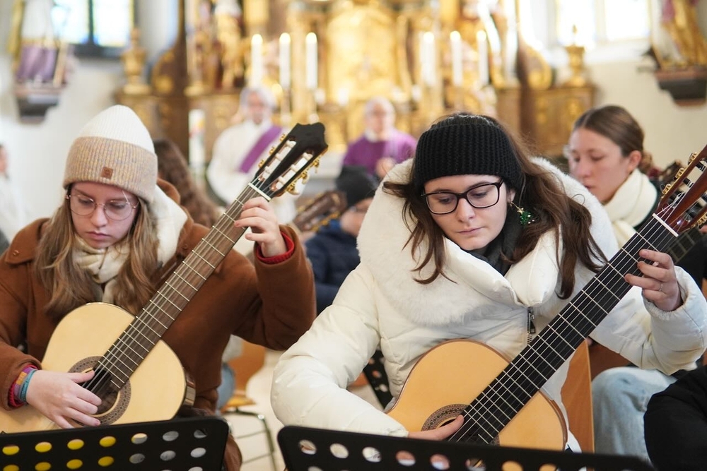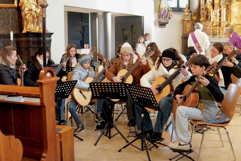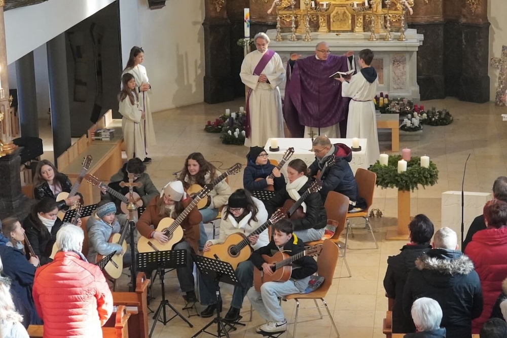 Mit viel Gefühl stimmten die jungen Musikerinnen und Musiker mit ihren Gitarren in die Adventzeit ein und bereicherten mit ihren Stücken die heilige Messe, die Vikar Norbert Glaser, unterstützt von Diakon Michi Zepf, zelebrierte.