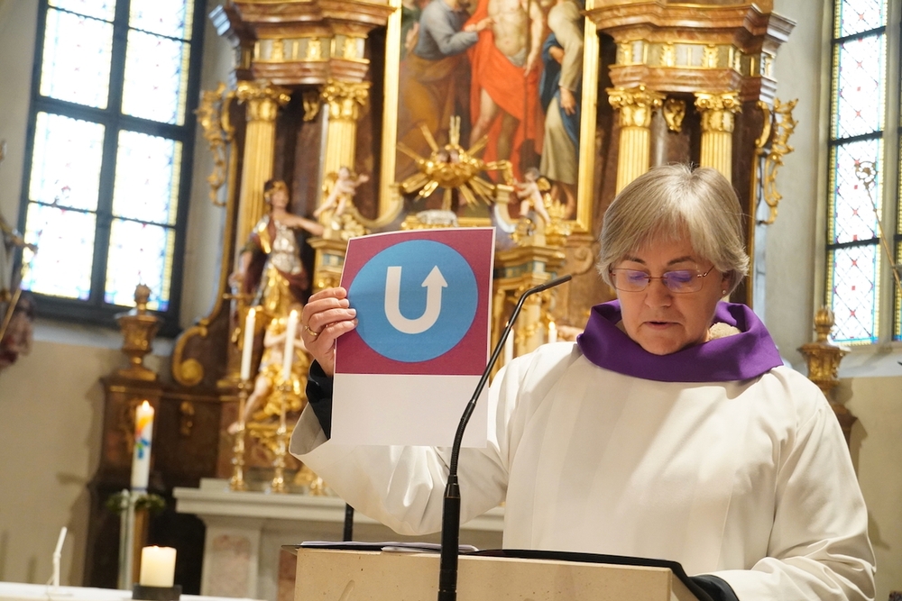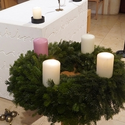 Bei der Wort-Gottes-Feier am Sonntag sprach WGF-Leiterin Christa Habith in Bezug auf Jesaja von der uralten Sehnsucht der Menschen nach Frieden und Gerechtigkeit. Nur durch Umkehr, siehe Johannes der Täufer (Mt 3, 1-12), kann Veränderung geschehen und Gott in uns ankommen. Umkehren heißt Haltungen überdenken, Altes verlassen und die Herzen öffnen.