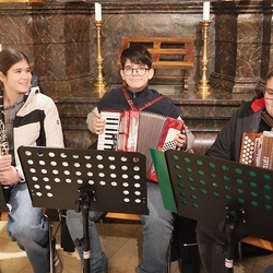 Streich- und Volksmusikinstrumente bereicherten mit schönen Weisen, vorgetragen von Schülerinnen und Schülern der Musikschule Premstätten, den Gottesdienst. Als Danke für die musikalische Gestaltung gab es, schon traditionell, für alle Musiker*innen eine süße Aufmerksamkeit.