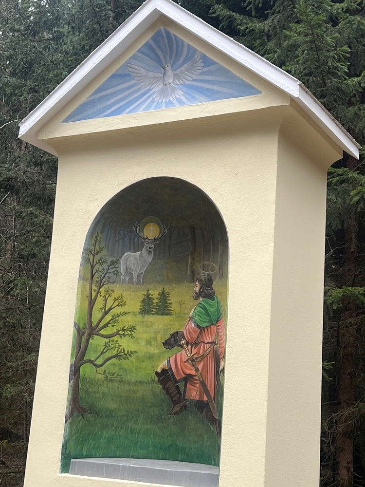 Die Rollenverteilung war ausgewogen. Von den Jägern der Jagdgesellschaften kamen die Grußworte, die gesprochenen Teile der Messe und die Einladung zum Zusammensein mit einer kräftigenden Bewirtung nach der Feier. Der Bürgermeister der Gemeinde Premstätten erzählte von den Leistungen anlässlich der Renovierung und von der Geschichte des Jägerkreuzes, und schließlich segnete in seinem Beisein Pfarrer Claudiu Budău den neu gestalteten Bildstock. Der Pfarrer führte dann durch den Ruf der Jagdhornbläser in die Geheimnisse des Waldes ein und sprach sehr lobend und begeistert in seiner Predigt über das Engagement der Jäger. Der Steirische Jägerchor gab mit der Neuberger Jagdmesse der Feier musikalischen Glanz.