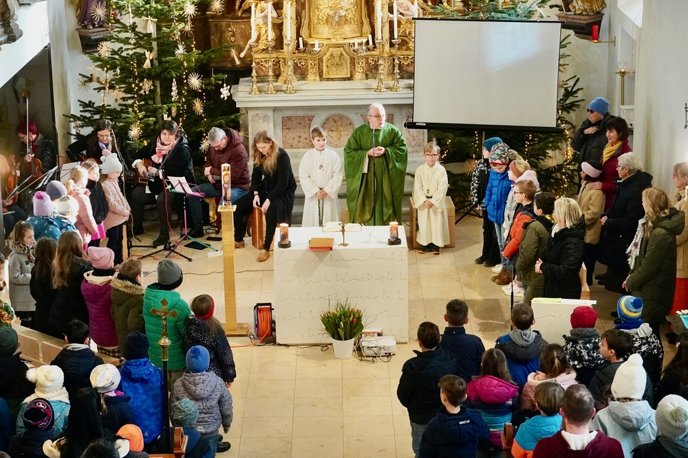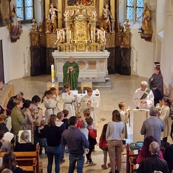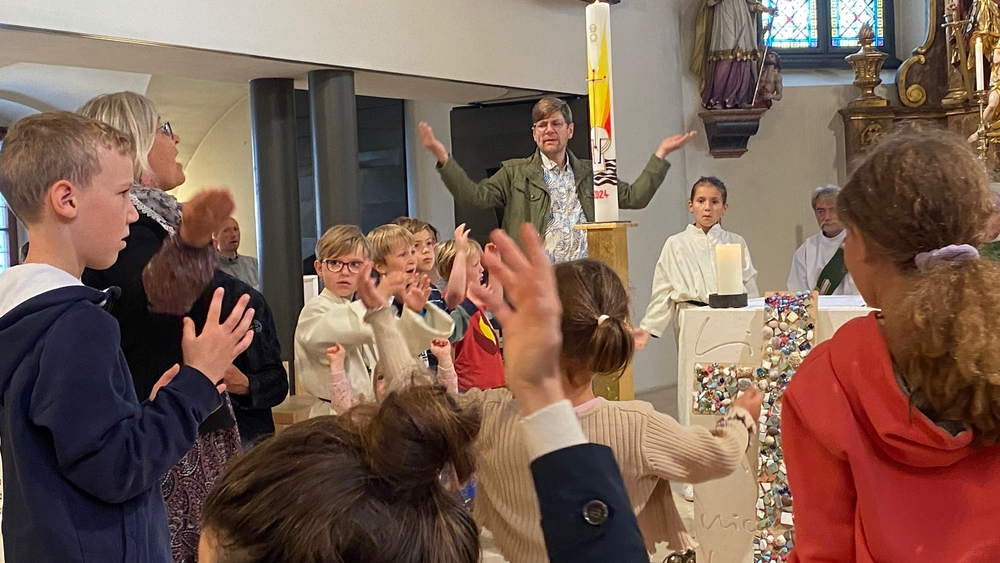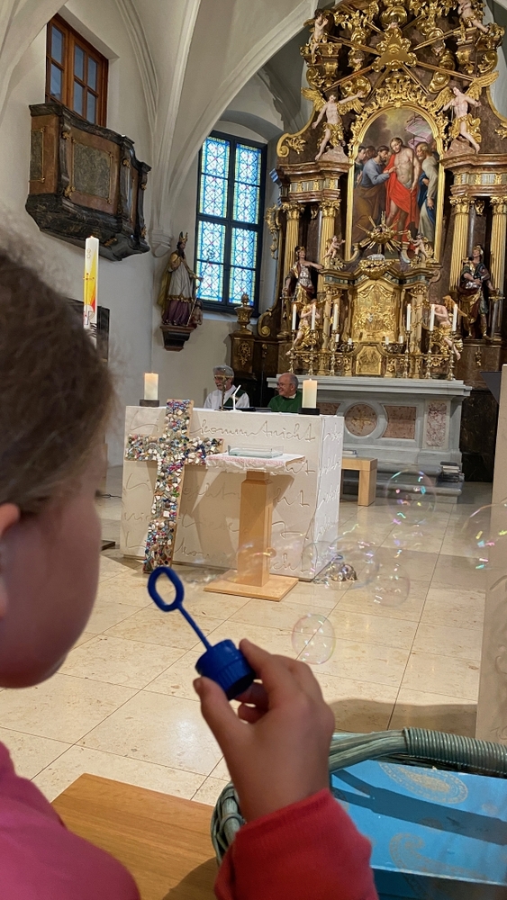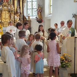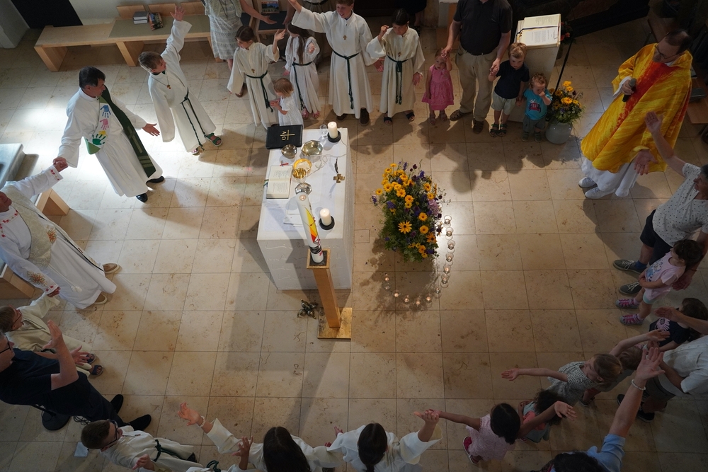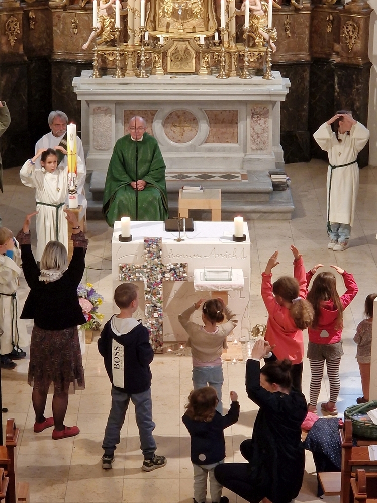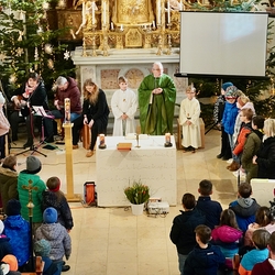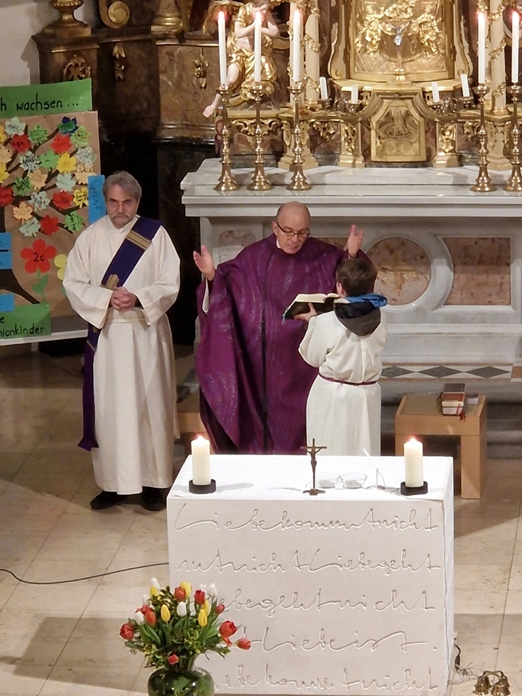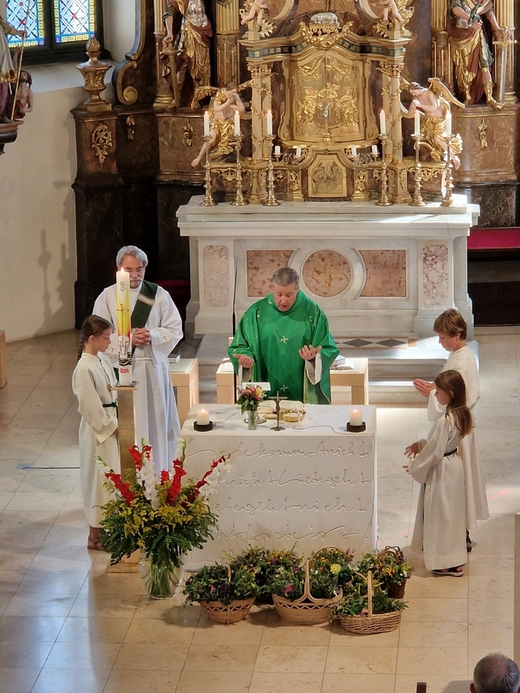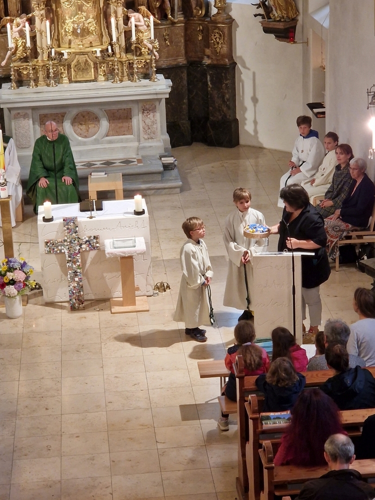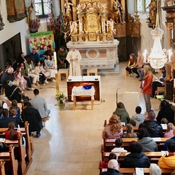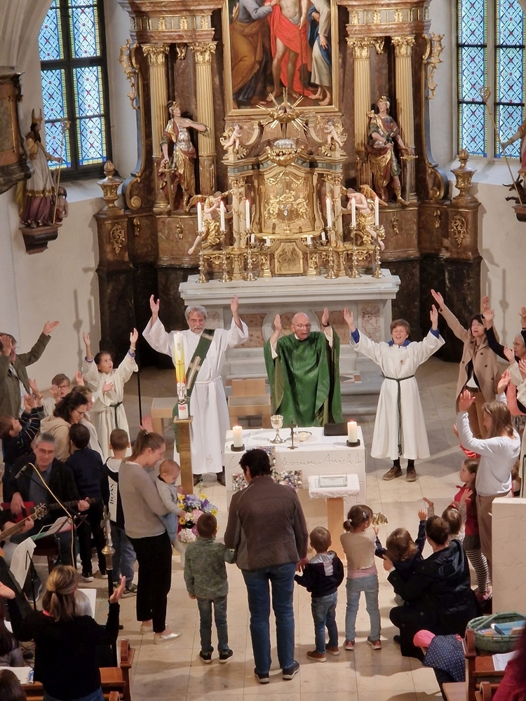 Zelebriert wurde die hl. Messe von Vikar Gerhard Hartmann und Diakon Michi Zepf, der die vielen Kinder zusammen mit den Minis zur Evangeliumsprozession und zum Vater-unser-Kreis einlud – spannende Momente für unsere Kleinen!