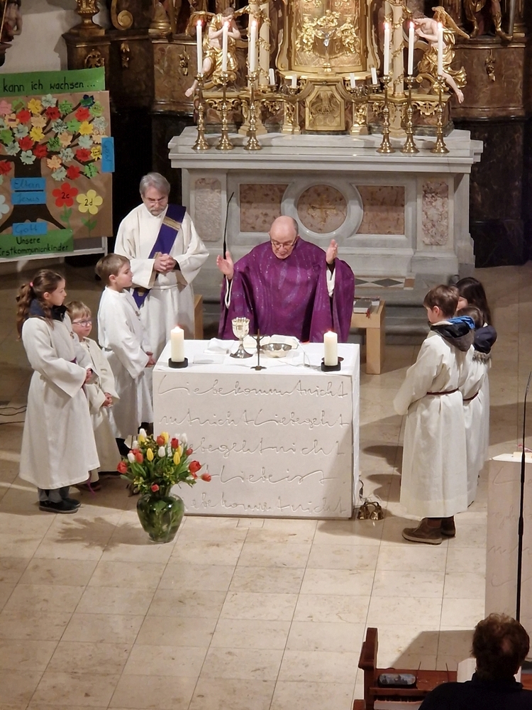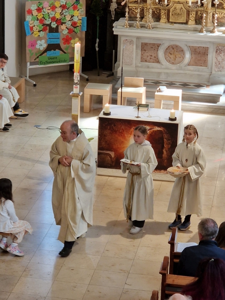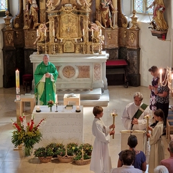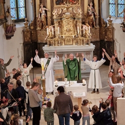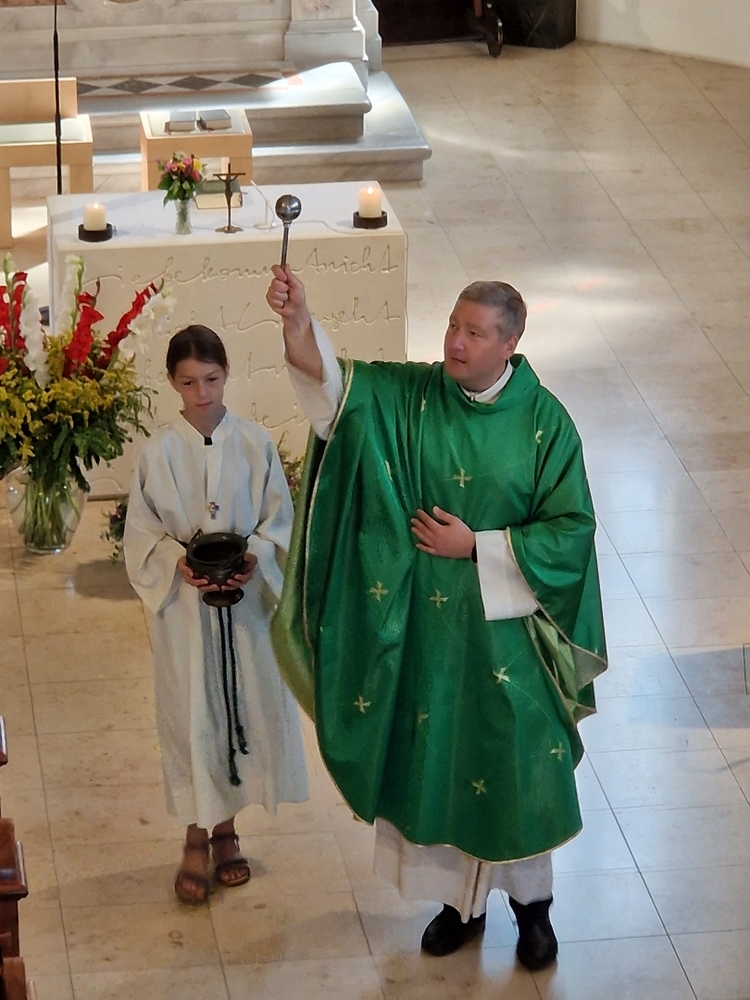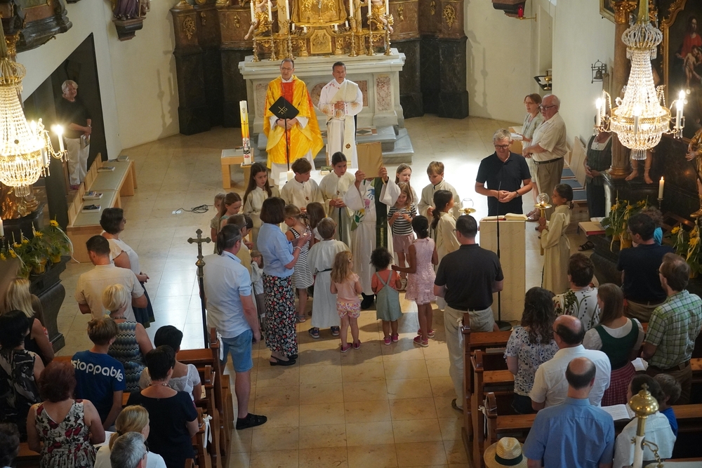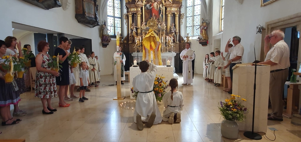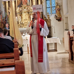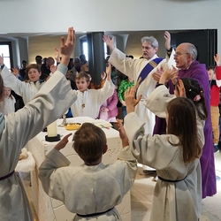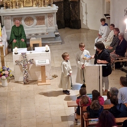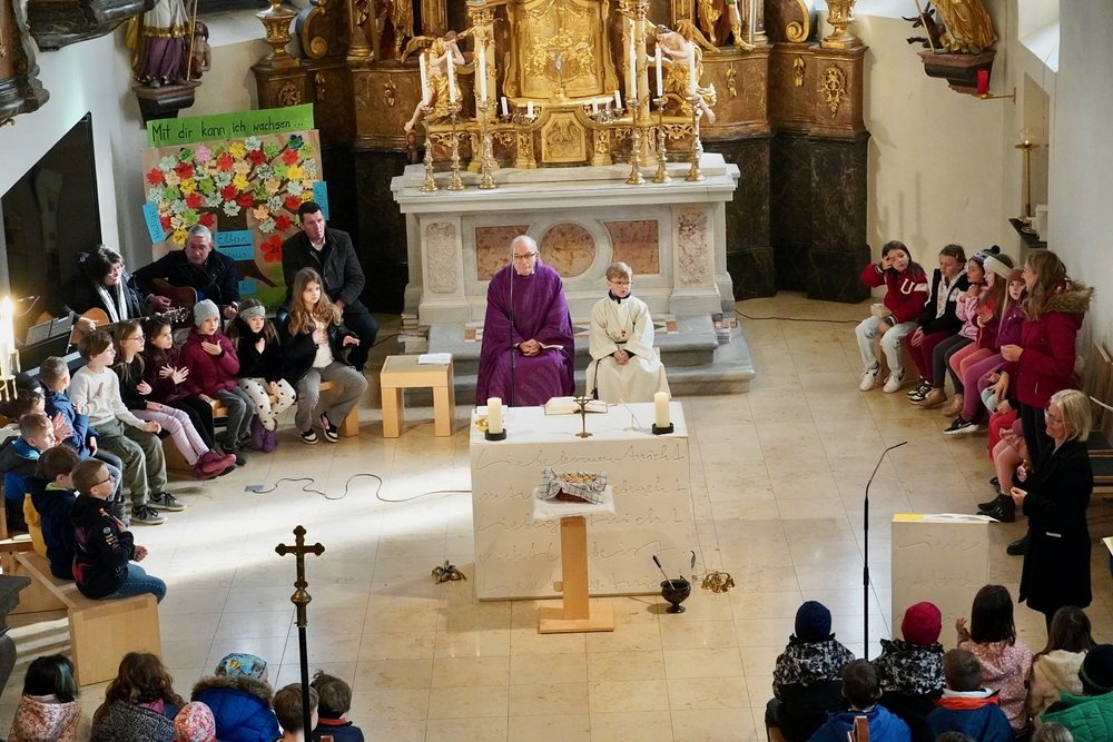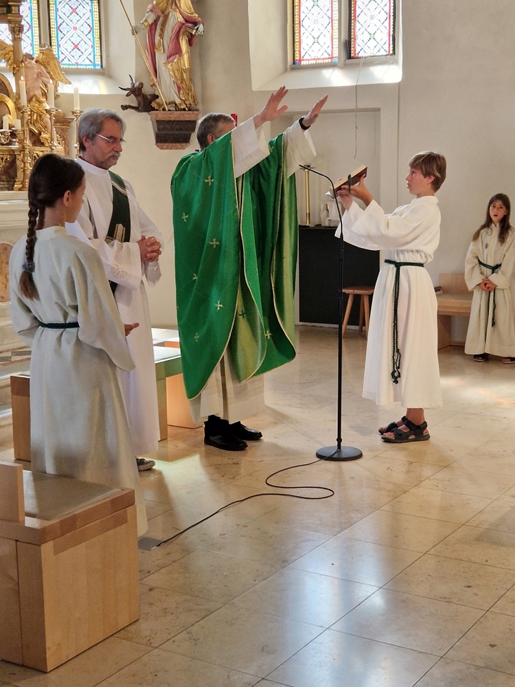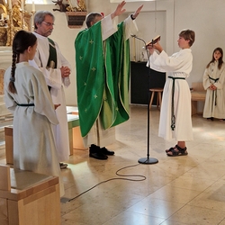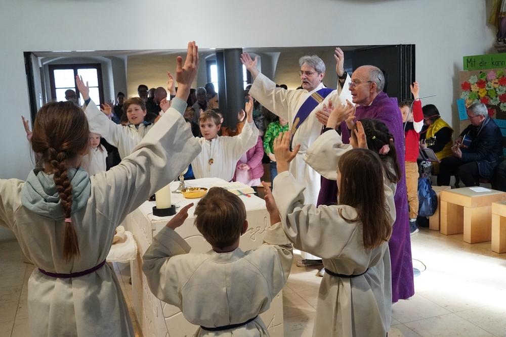 Zelebriert wurde die hl. Messe von Vikar Gerhard Hartmann und Diakon Michi Zepf, der die vielen Kinder zusammen mit den Minis zur Evangeliumsprozession und zum Vater-unser-Kreis einlud – spannende Momente für unsere Kleinen!