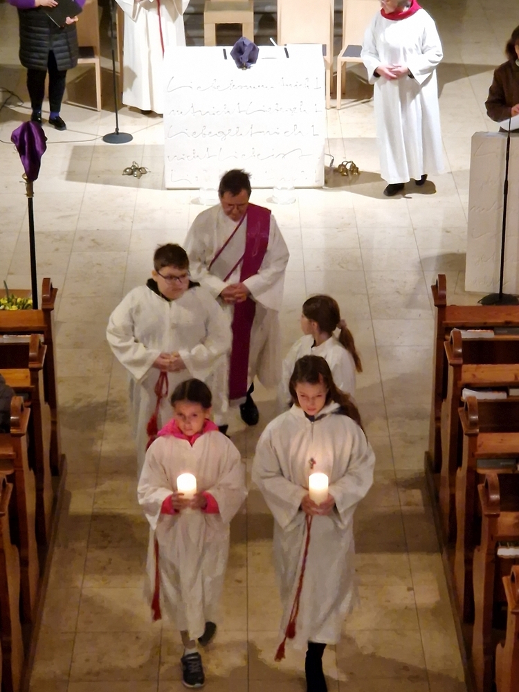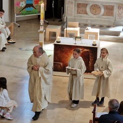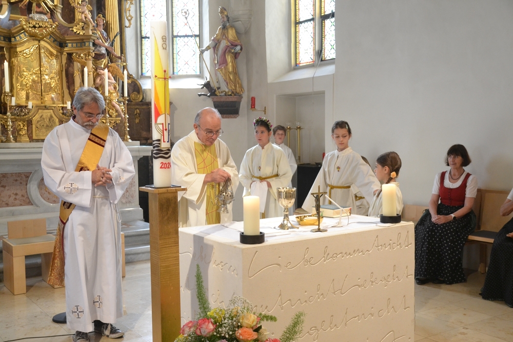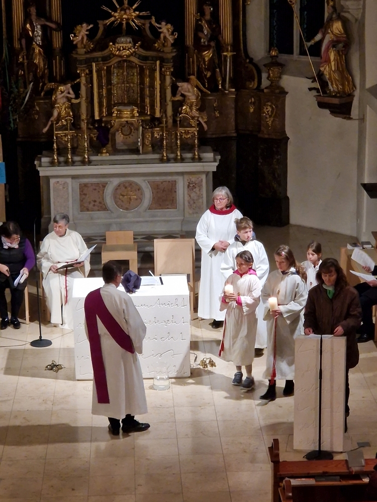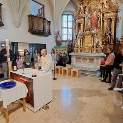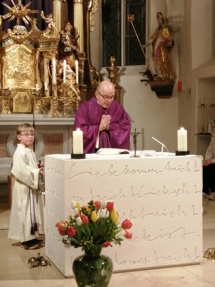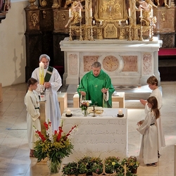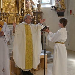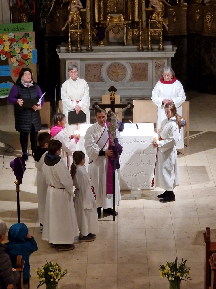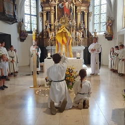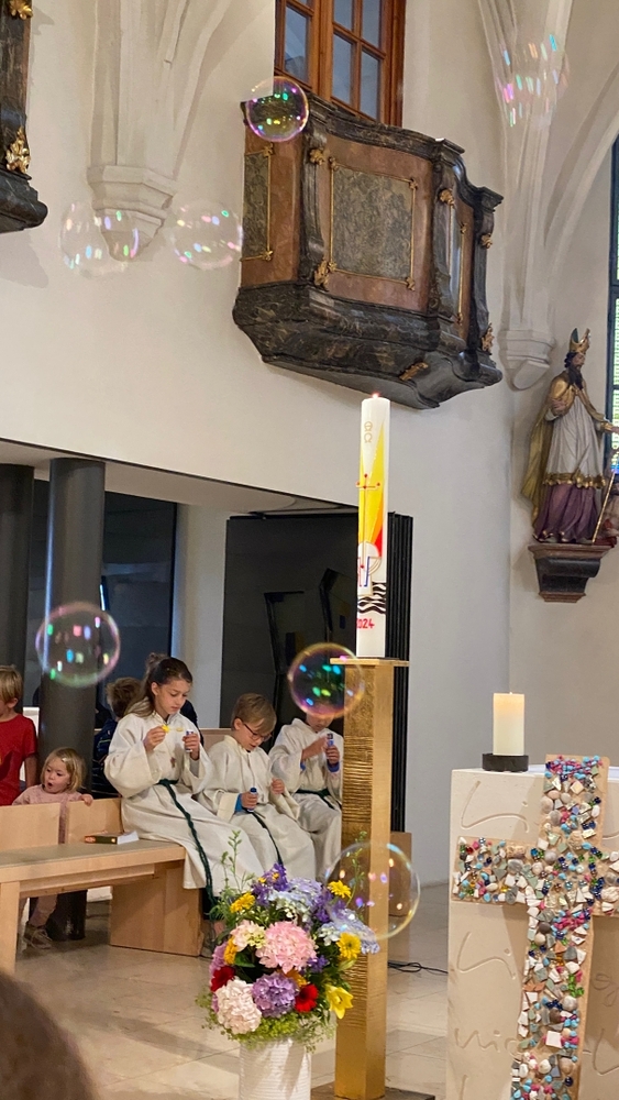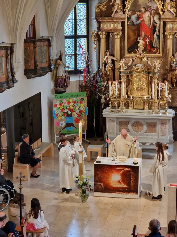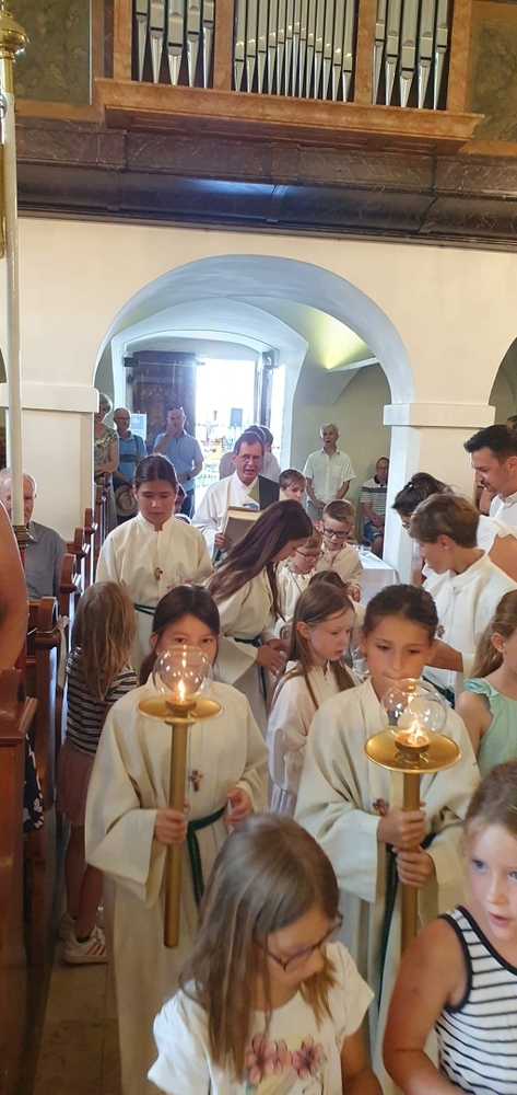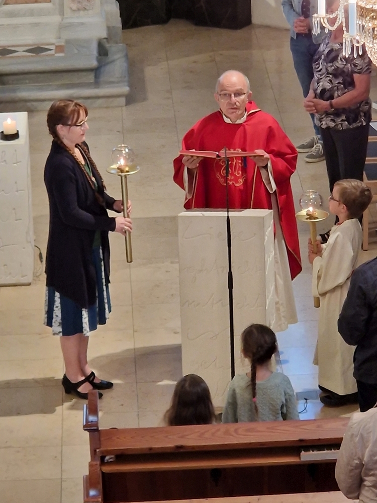 Zelebriert wurde die hl. Messe von Vikar Gerhard Hartmann und Diakon Michi Zepf, der die vielen Kinder zusammen mit den Minis zur Evangeliumsprozession und zum Vater-unser-Kreis einlud – spannende Momente für unsere Kleinen!