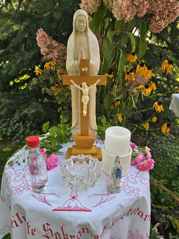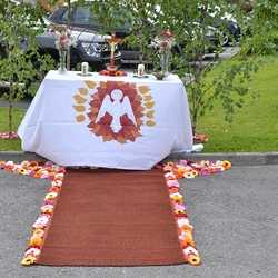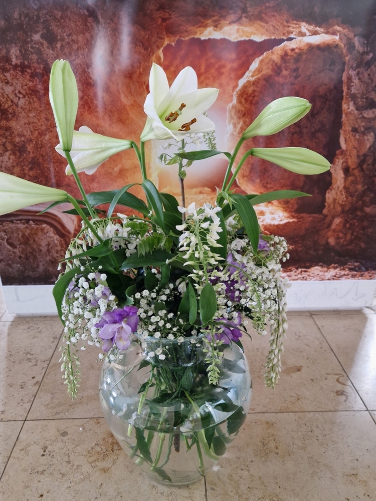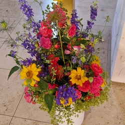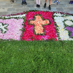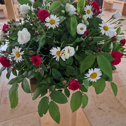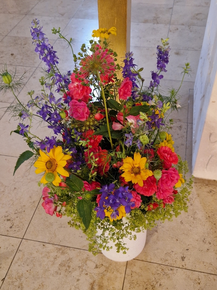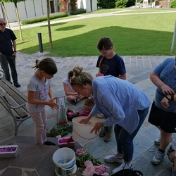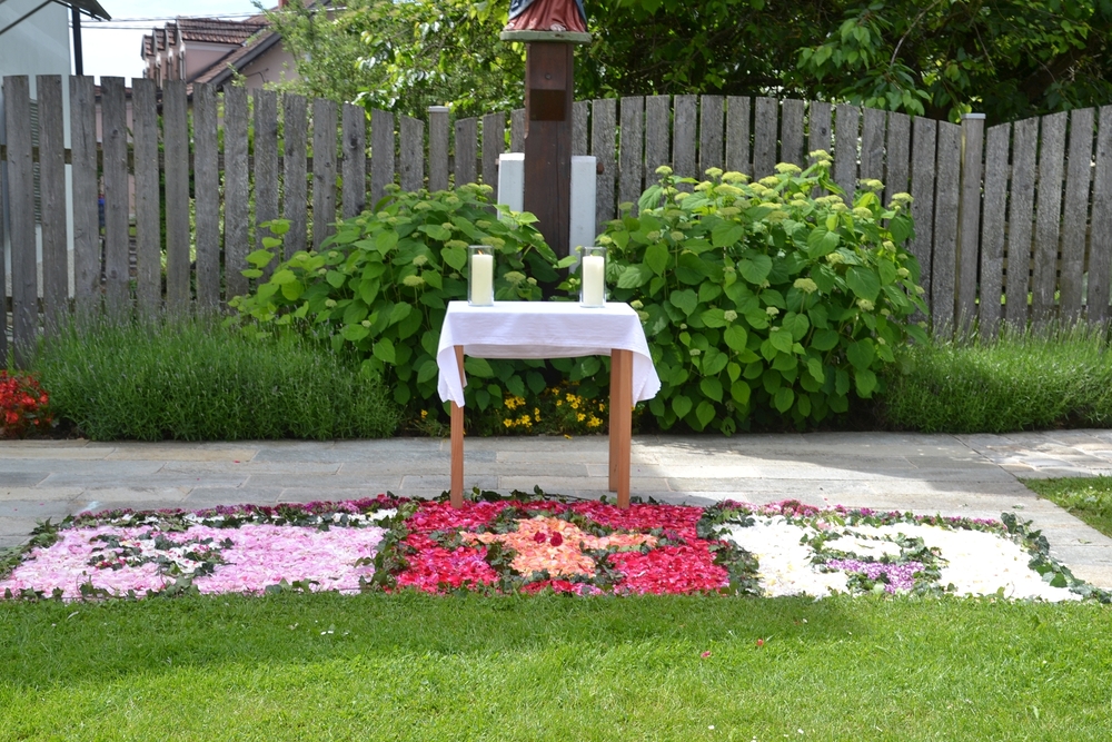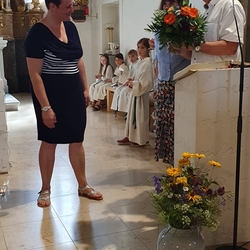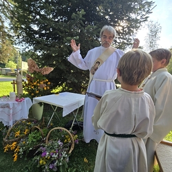 Im Zentrum der schön gestalteten Feier standen ein Taufgedächtnis mit Weihwasserritus, ein Evangelium (Mt, 6, 26-33), Blumentexte (in denen man sich mit der einen oder anderen Blumenbeschreibung ganz gut identifizieren konnte), Dankesworte sowie Fürbitten.