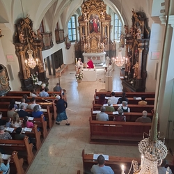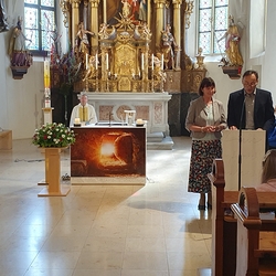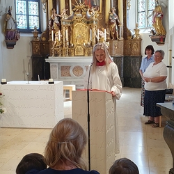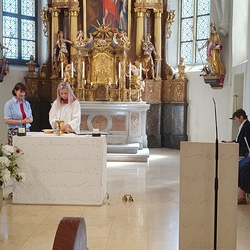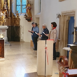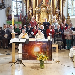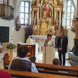 So war es naheliegend, dass der Kirchenchor am „Elisabethsonntag" den beiden zu Ehren den Gottesdienst musikalisch gestaltete. Mit Chorleiterin Magdalena Moser an der Orgel wurden Lieder von Kathi Stimmer-Salzeder sowie neues Liedgut aus GL und DMU - auch zum Mitsingen - dargeboten.