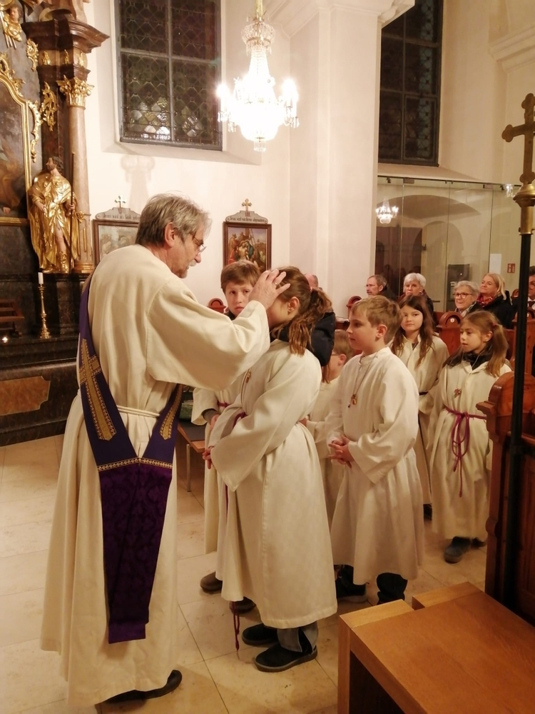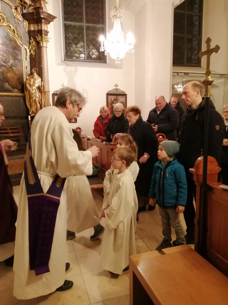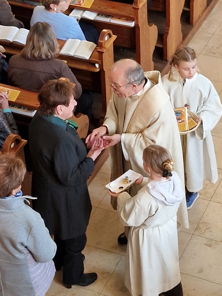 Beim Aschermittwoch-Gottesdienst mit Vikar Norbert Glaser und Diakon Michi Zepf erhielten die vielen Gläubigen, die gekommen waren, das Aschenkreuz auf die Stirn gezeichnet. Es ist ein starkes sichtbares Zeichen, das „hautnah“ an die Vergänglichkeit erinnert und uns auffordert, im Einklang mit dem Evangelium zu leben.