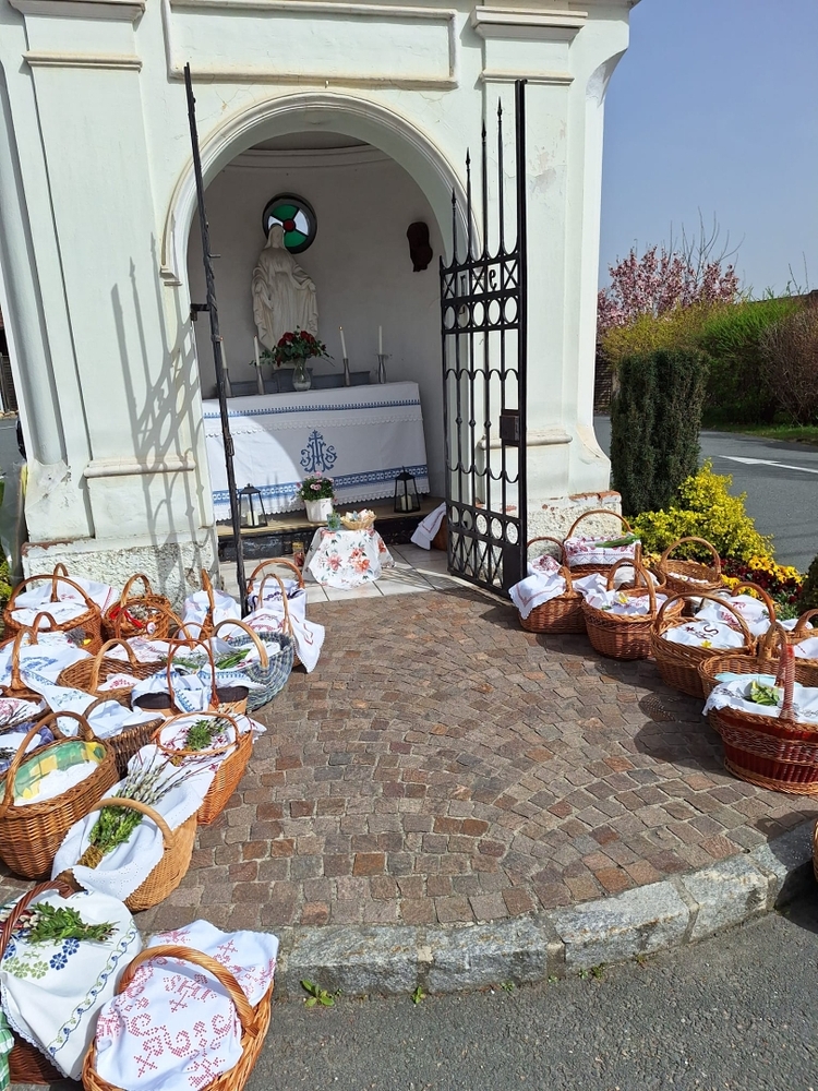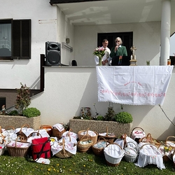 Ein Fixpunkt im Kirchenjahr ist für viele Christinnen und Christen die Osterspeisensegnung. Auch in unserer Pfarre kommen immer viele Menschen zu den einzelnen Stationen, so auch heuer wieder am Karsamstag.