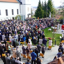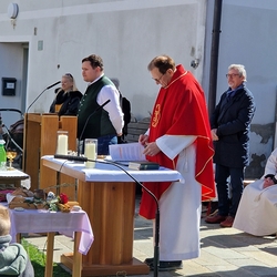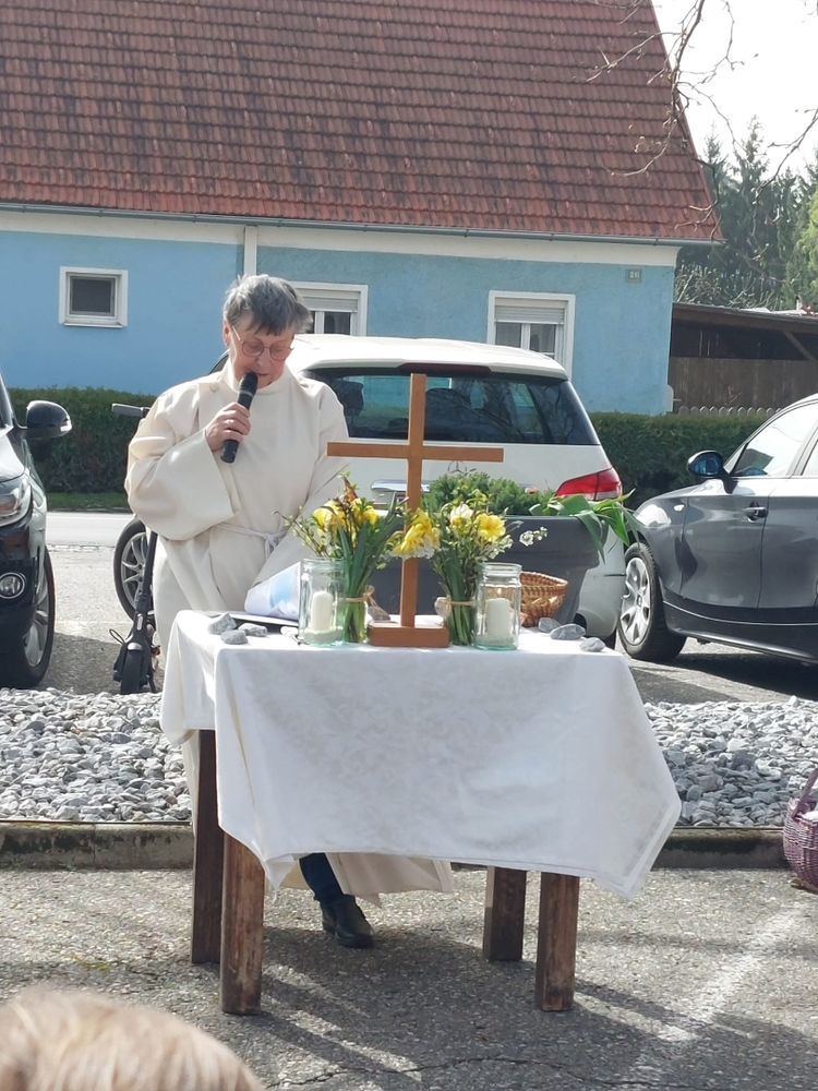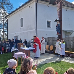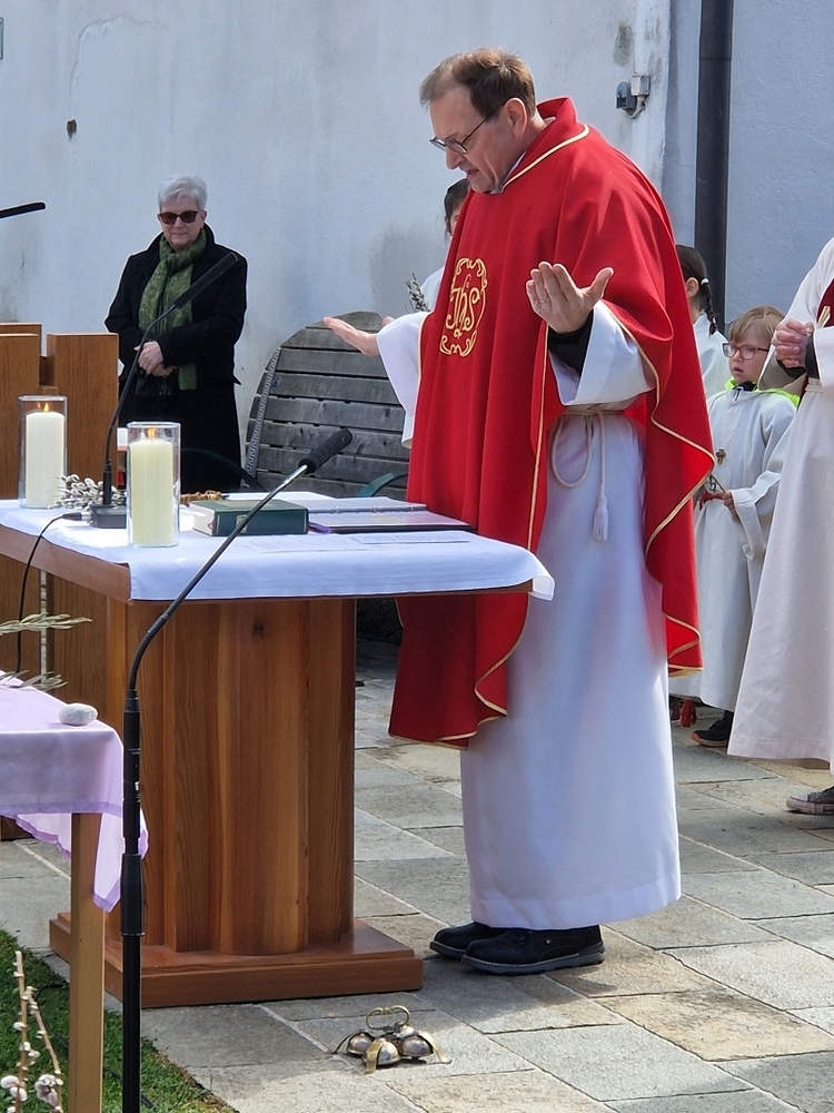 Diakon Franz Habith gestaltete um 11 Uhr in der Kaiserwald-Kapelle die Palmsegnung und Pastoralreferentin Ines Kvar leitete um 14:30 Uhr im Zettling-Park die Feier zur Segnung der Palmzweige.