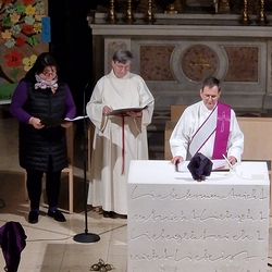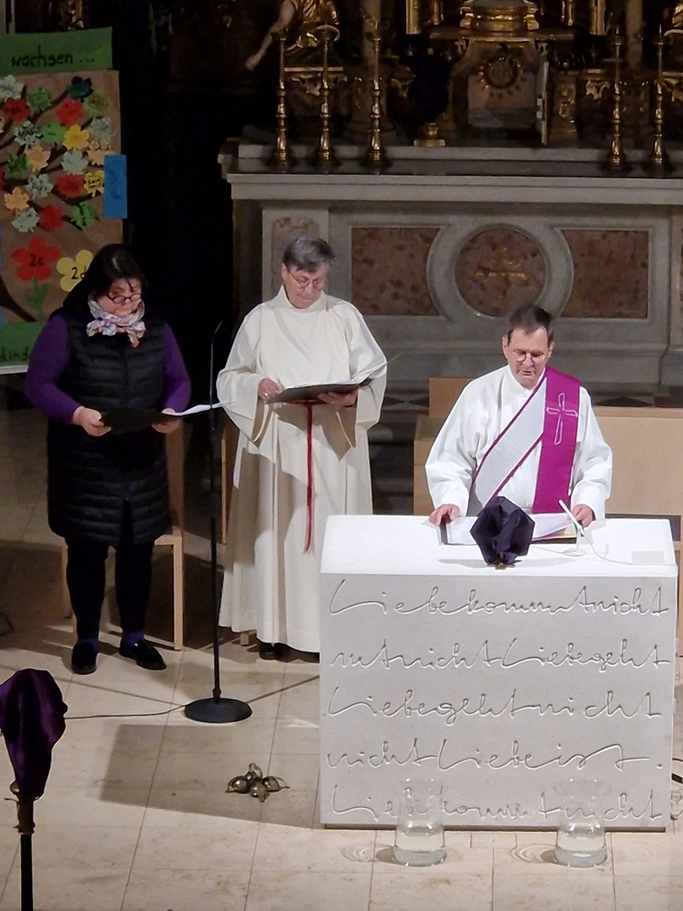 Gastgeber der röm. kath. Kirche war Diakon Michi Zepf, der zusammen mit Esther Handschin (Evangelisch-methodistische Kirche) und Ines Tobisch (Altkatholische Kirche) den Gottesdienst zelebrierte.