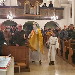 Bevor die Nikoläuse am Vorabend des Nikolaustages „ihren Dienst antraten“, wurden sie von allen in der Kirche anwesenden Kindern und Erwachsenen gesegnet.