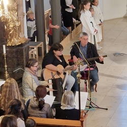 Das harmonische Miteinander spürte man besonders beim Friedensgruß, beim Glaubensbekenntnis, beim Segnen, beim Vater-Unser-Kreis und beim Singen der schönen Lieder. Ein herzliches Danke an Johannes Chum und Ursi Schrei für die einfühlsame musikalische Begleitung!
