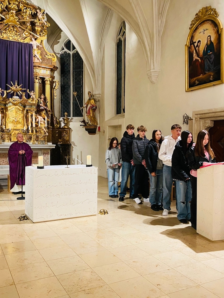 Unsere Firmgruppe, bestehend aus neun Firmlingen, hat am Samstag, dem 2. März, die Abendmesse in der Pfarrkirche Premstätten mitgefeiert. Wir haben persönliche Fürbitten vorbereitet, die von den Firmlingen bei der heiligen Messe, die Kanonikus Friedrich Trstenjak zelebrierte, vorgetragen wurden.
