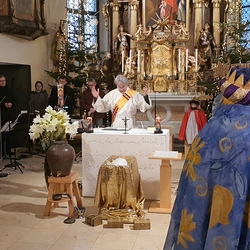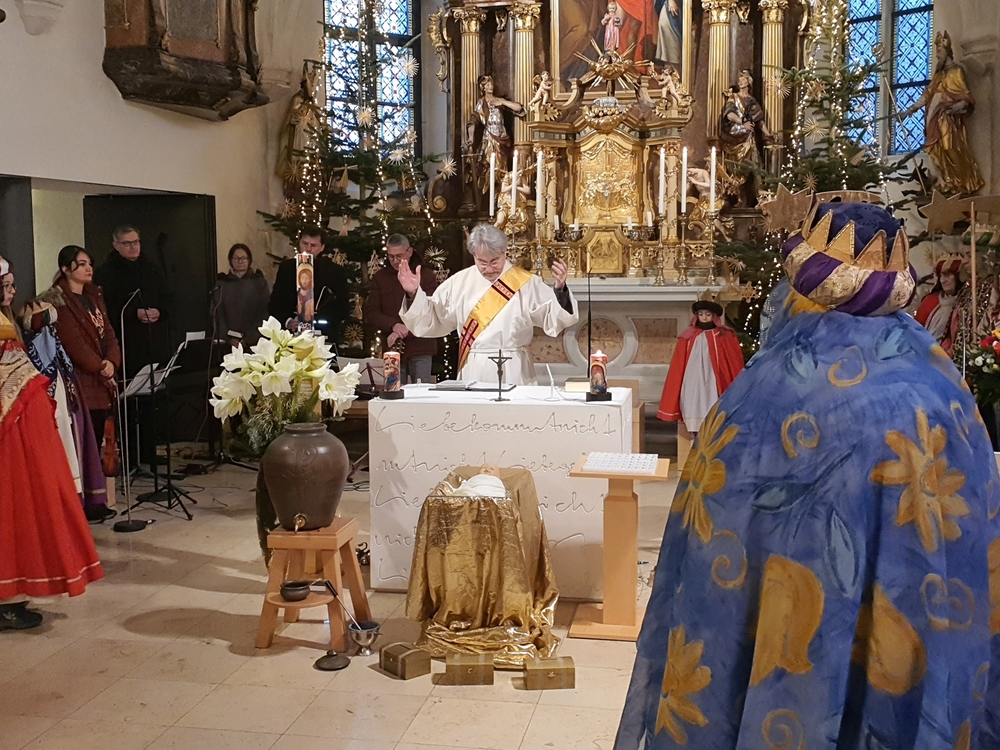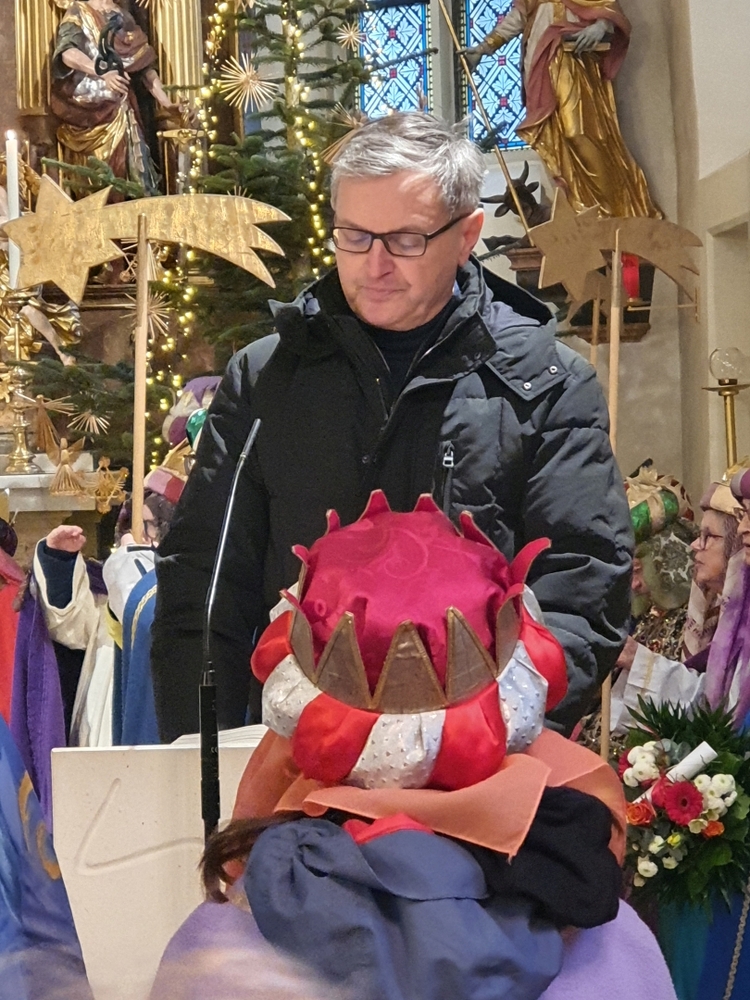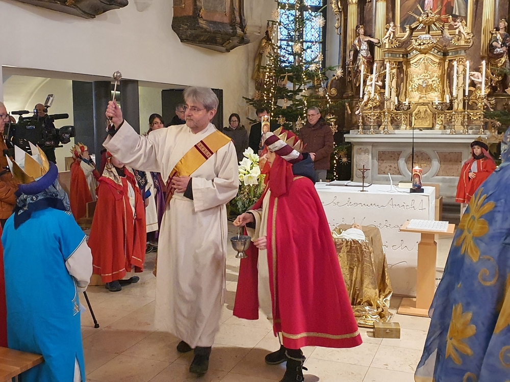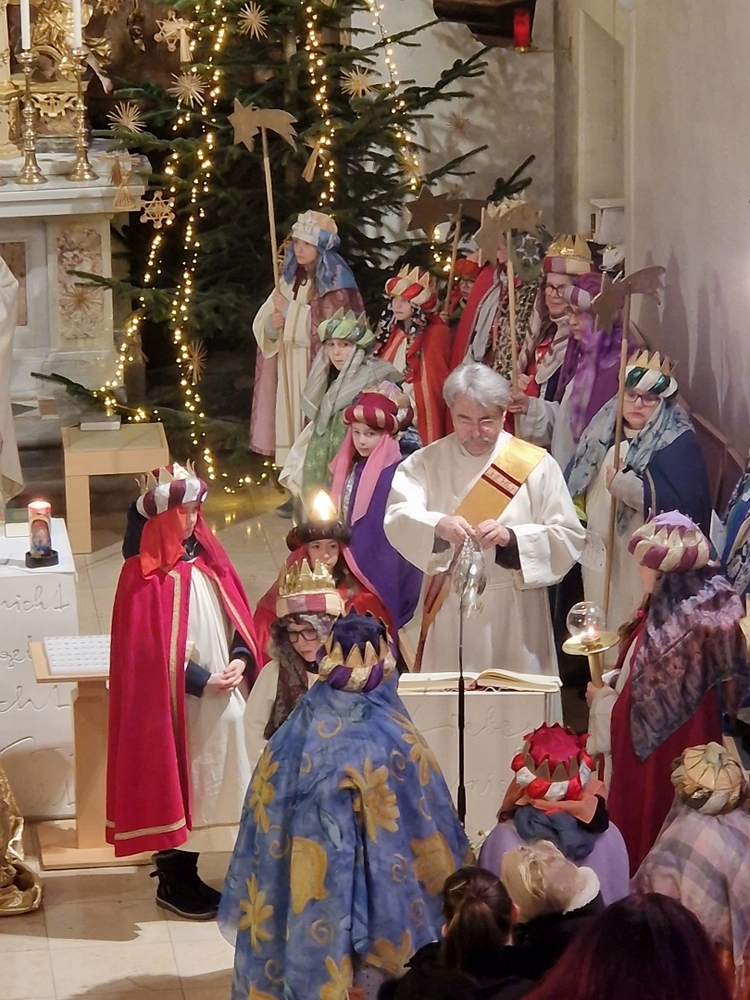 Vikar Norbert erläuterte in seiner Predigt die göttliche Bedeutung von Gold, Weihrauch und Myrrhe und unterstrich die Großartigkeit des Sternsingens, das ganz dem Geiste Jesu entspricht, der sich selber- als Mensch gewordene Liebe Gottes- allen Menschen zuwendet. …