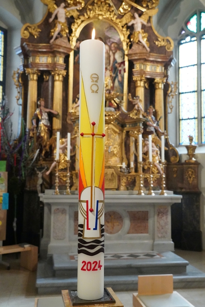 Herzlichen Dank an Ingeborg Stubenrauch für die wunderschön gestaltete Osterkerze 2024!