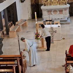 Die Liturgie vom Leiden und Sterben Jesu feierte heuer Diakon Franz Habith in unserer Pfarre. Unterstützt wurde er dabei von fünf MINIS, den Wort-Gottes-Feier-Leiterinnen Christa Habith und Elisabeth Schöpf, der Kantorin Ursi Schrei, der Lektorin Carola Wiedner und dem Lektor Josef Zachenegger.